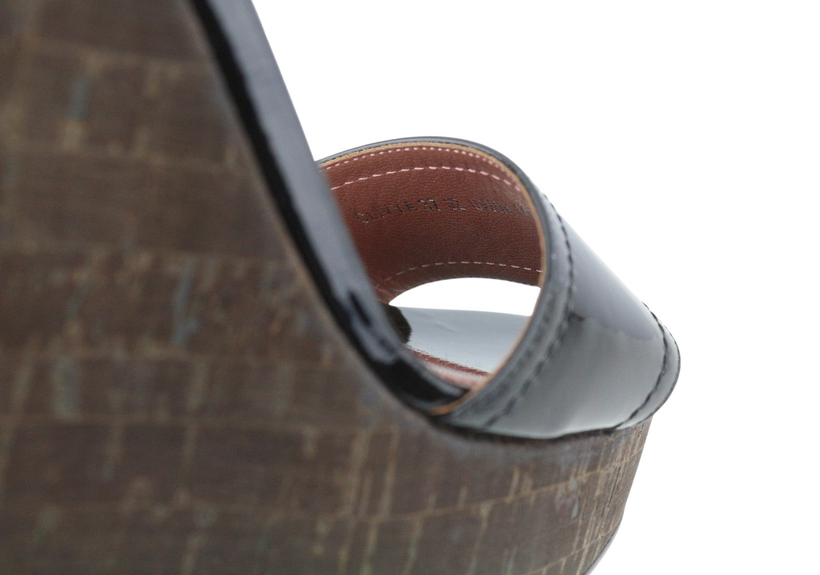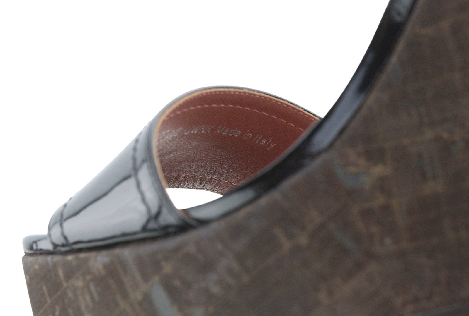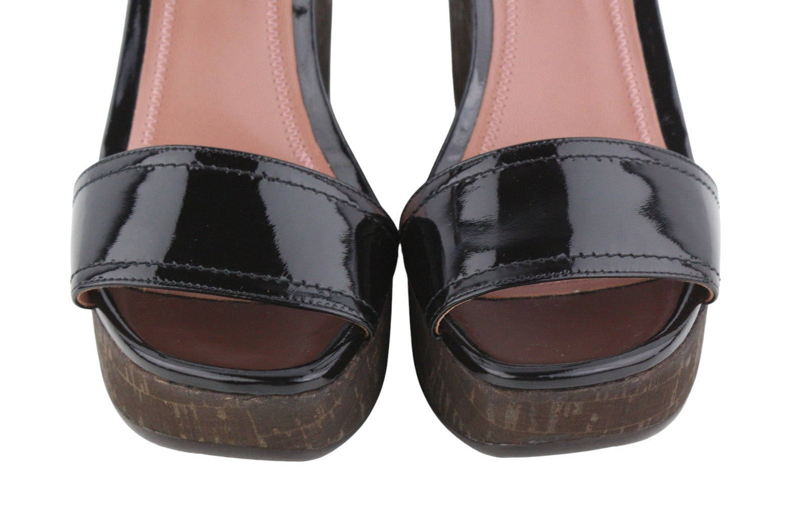 BALLY Clivya Women Sandals EU37.5 Black Patent Leather Slingback Wedge RRP479