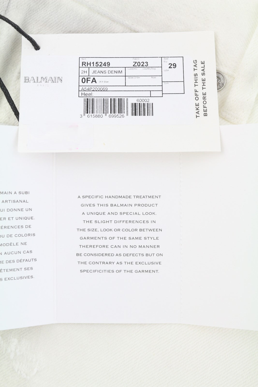 BALMAIN Men Jeans 29 White Distress Straight Fit Destroyed Dirty Look RRP690