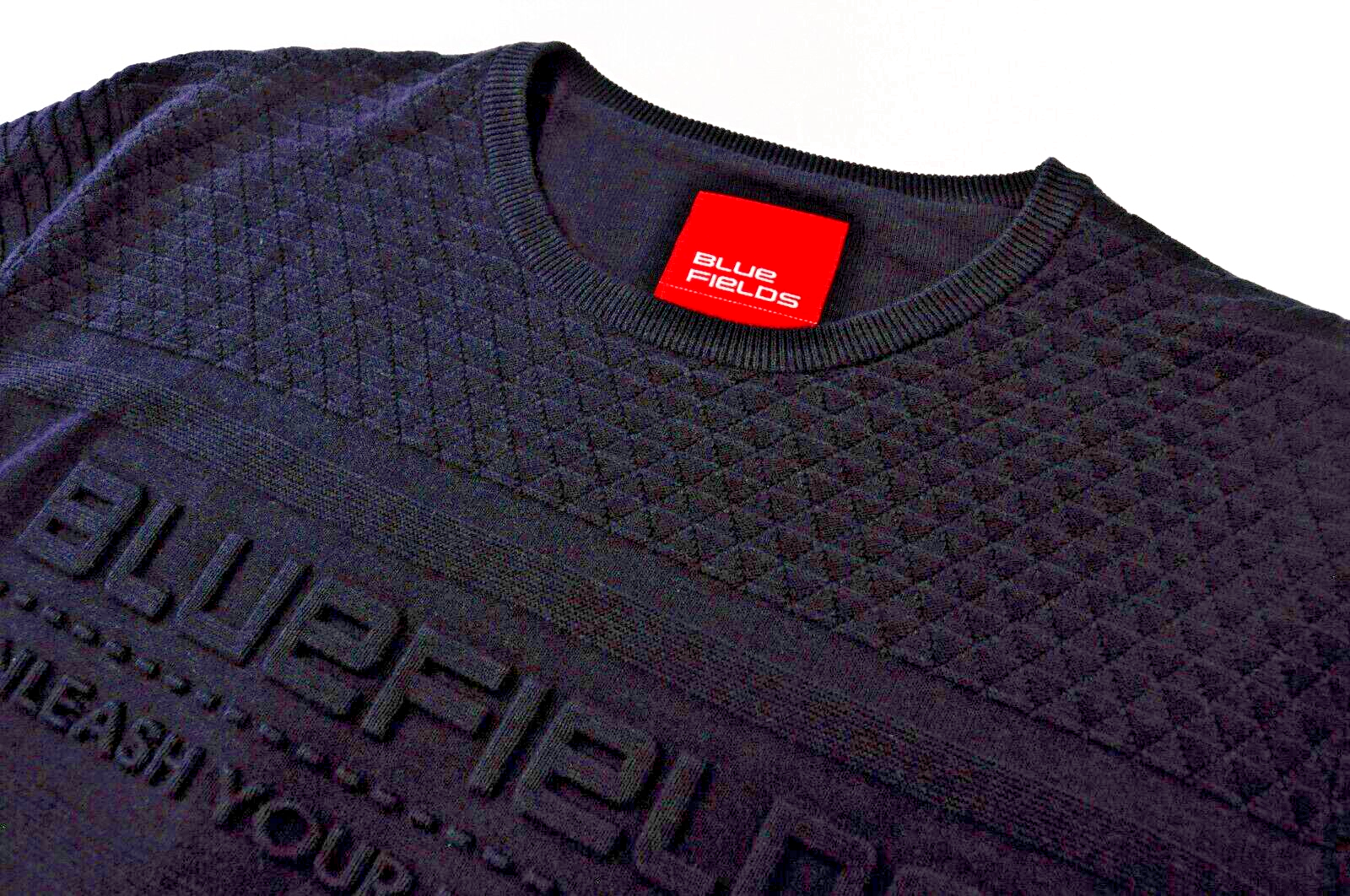 BLUE FIELDS Men Knit Pullover L Navy Round Neck Logo Long Sleeve Sweater