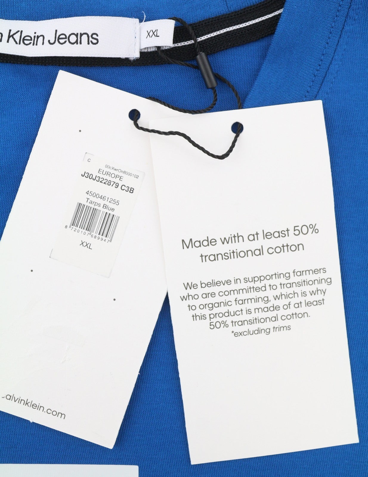 CALVIN KLEIN Men T-Shirt 2XL Blue Cotton Tricot Front Logo Short Sleeved