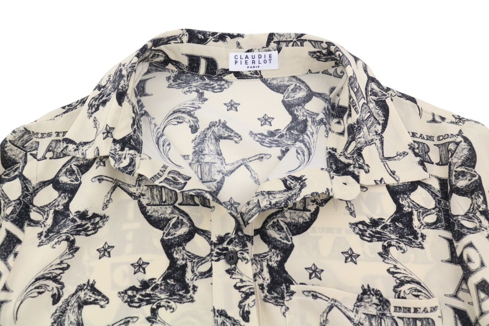 CLAUDIE PIERLOT Rocade Women Dress 36 S Beige Silk Flowing Patterned Long Sleeve