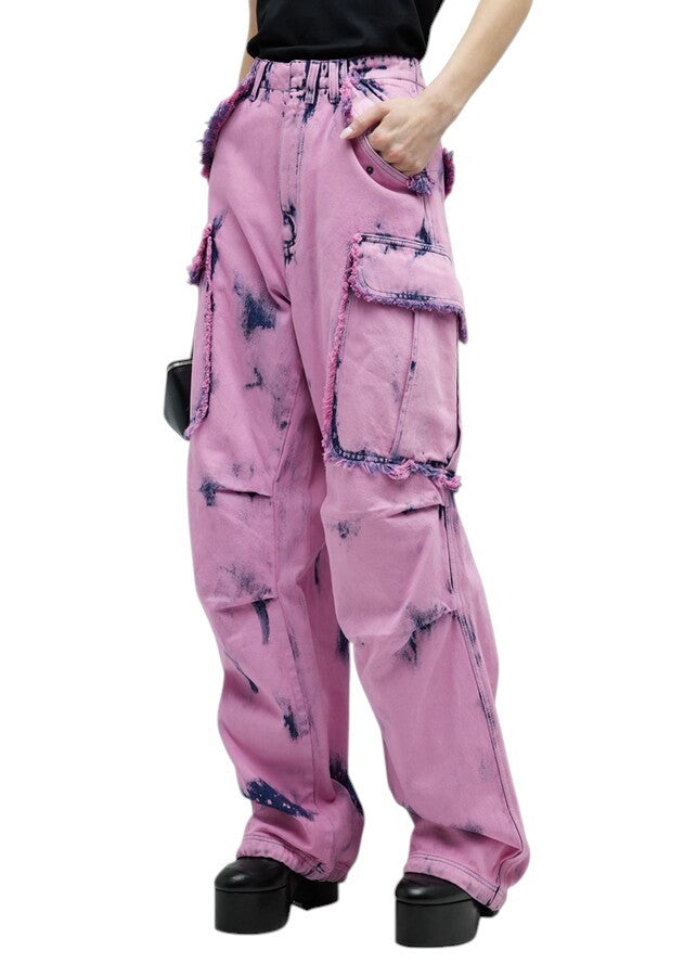 DARKPARK Vivi Cargo Women Jeans 27 PB Pink Blue Relaxed Wide Denim