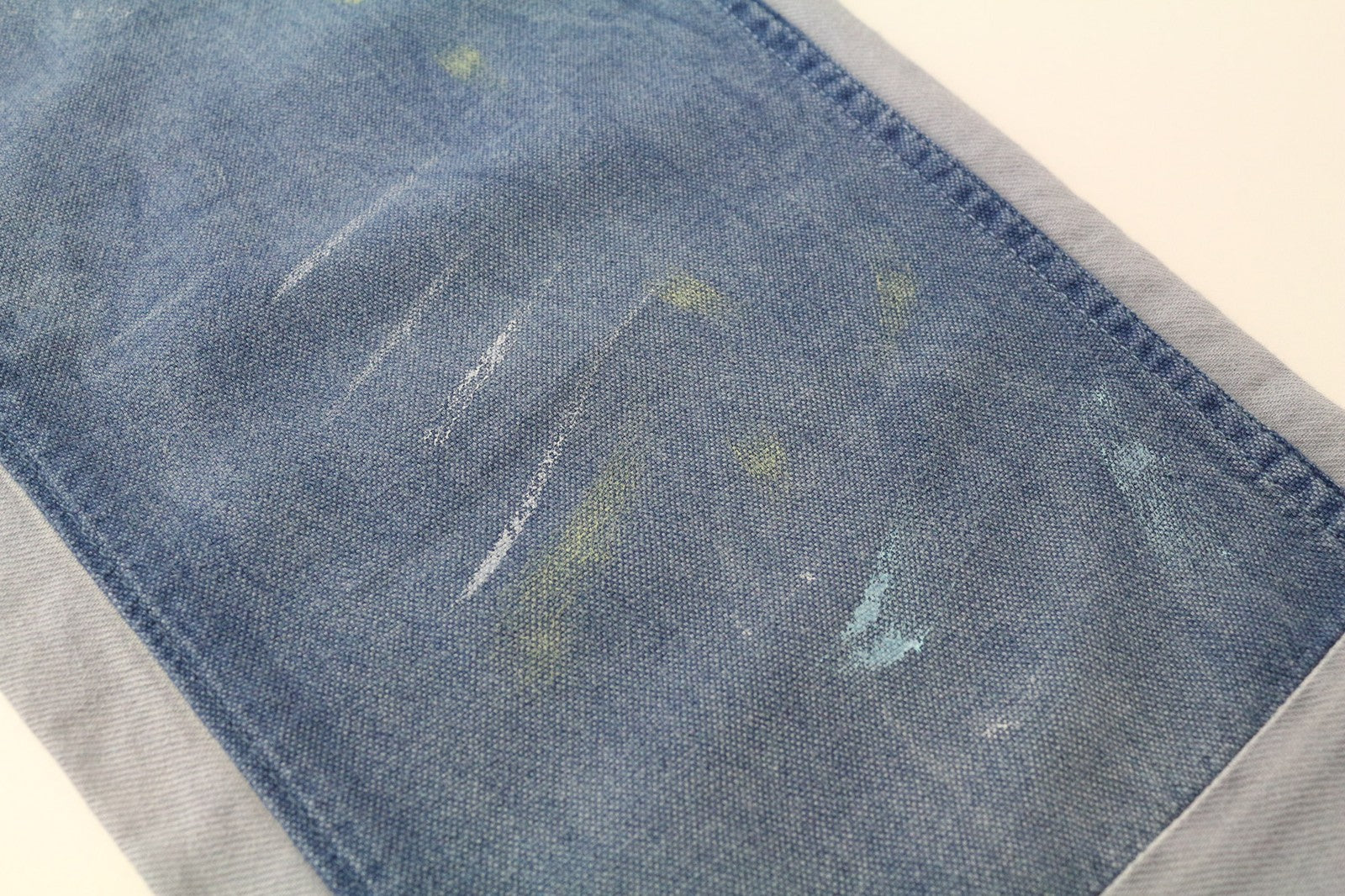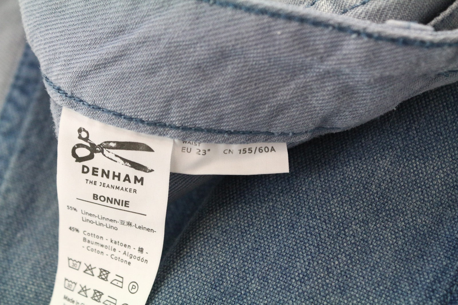 DENHAM Bonnie Women's Pants W23/L28 Blue Patched Two-Tone Wide Straight Leg
