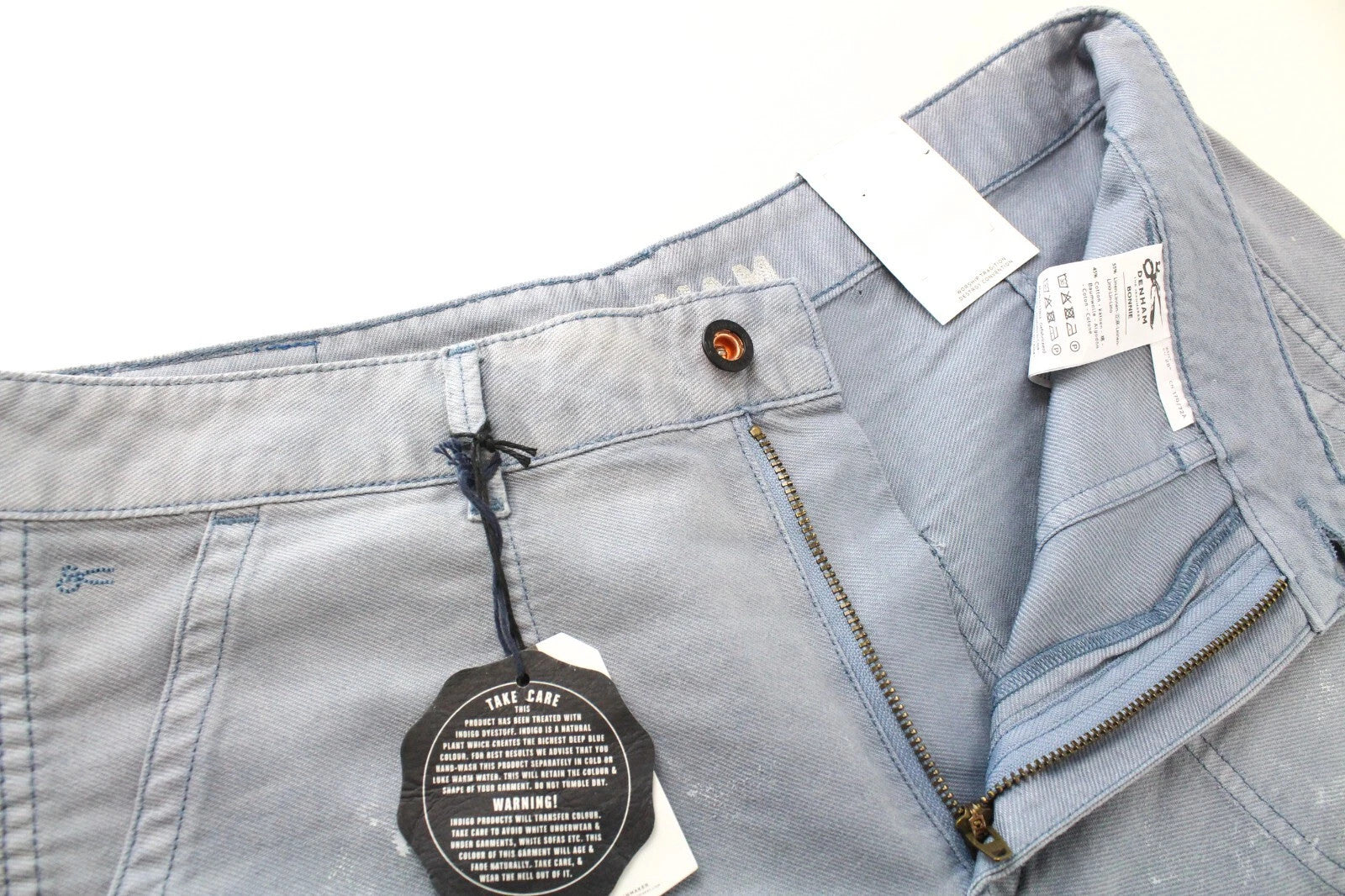 DENHAM Bonnie Women's Wide Leg Pants W28/L28 Blue Cotton Linen Paint Stained