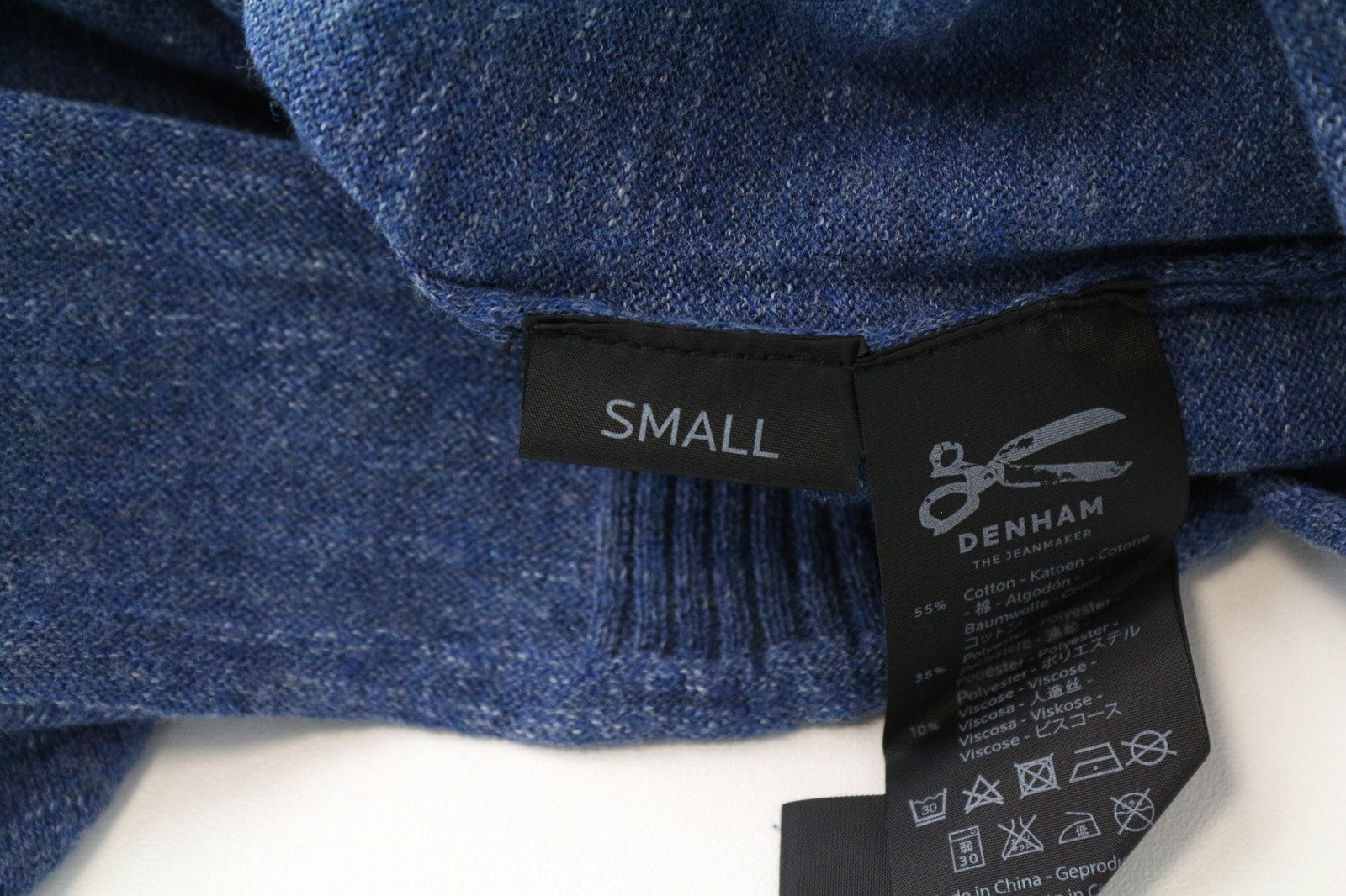 DENHAM Carver Men's Sweatshirt S Blue Cotton Blend Pullover Casual Long Sleeve