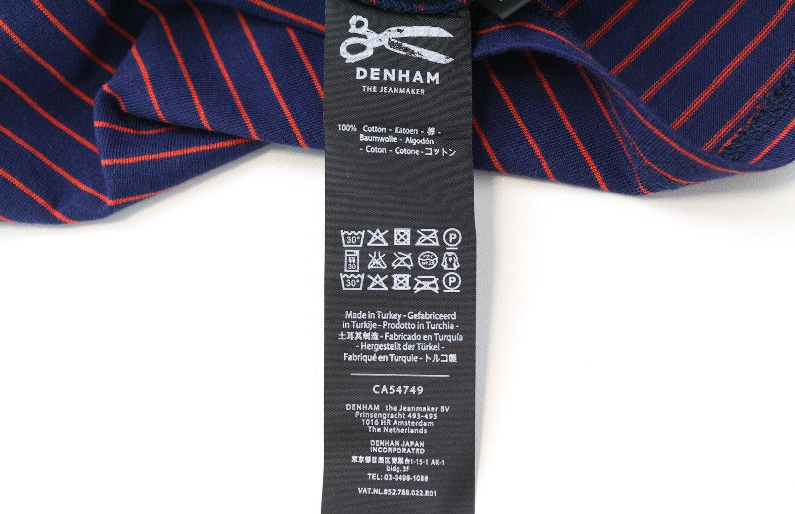 DENHAM Glide Men's XS Navy Striped Pure Cotton Crew Neck Pullover T-Shirt