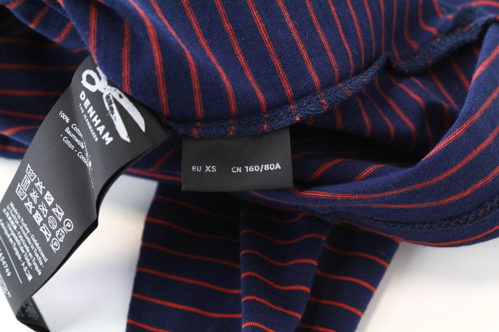 DENHAM Glide Women's T-Shirt XS Navy Red Stripe Cotton Long Sleeve Casual
