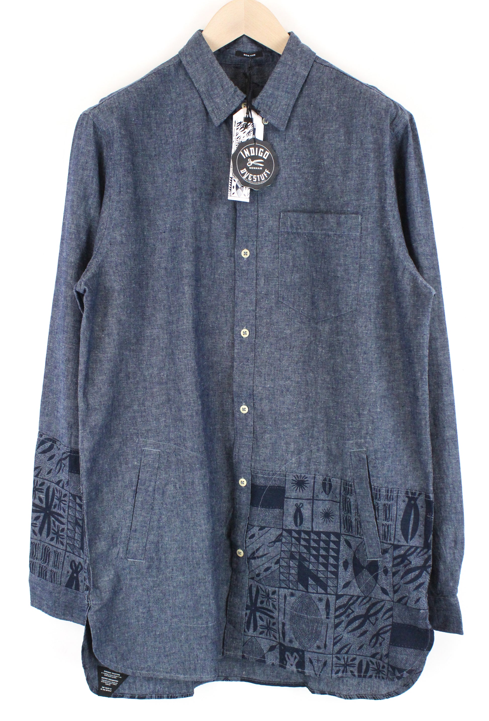 DENHAM Hga Mens Indigo Blue L Shirt Cotton Printed Look