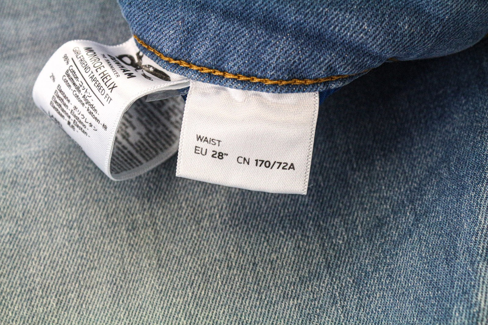 DENHAM Monroe Helix Women's Jeans W28/L28 Blue Cotton Stretch Girlfriend Taper