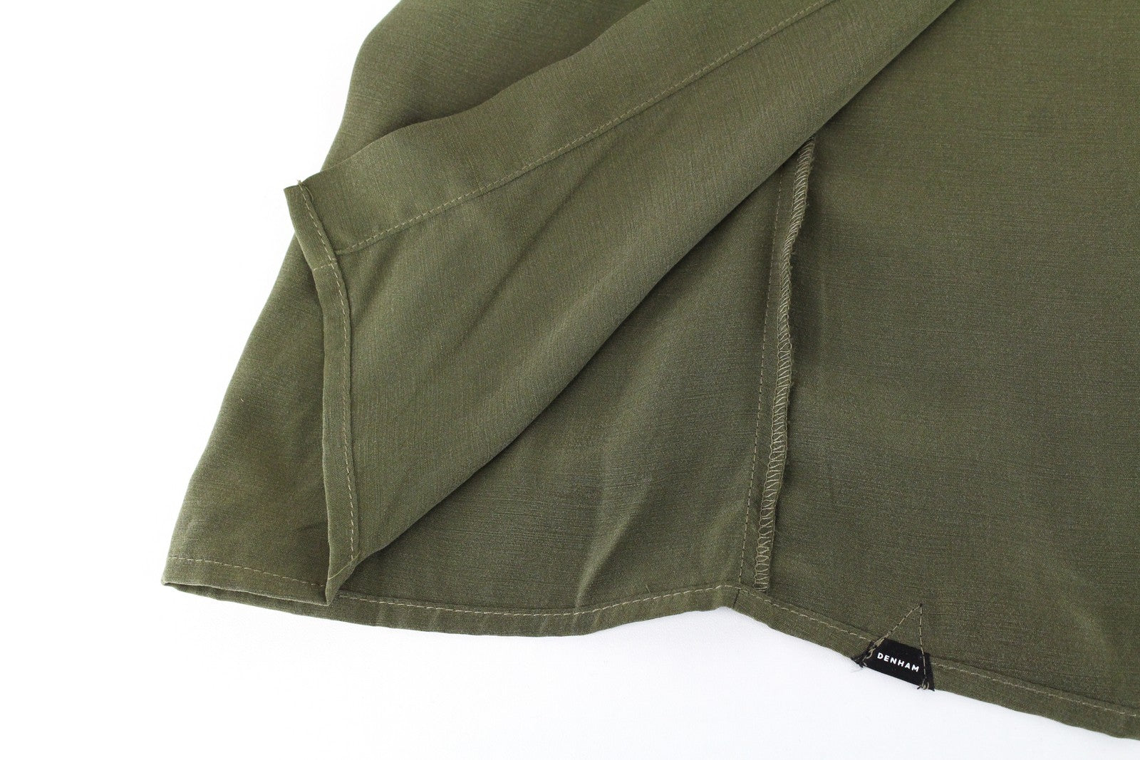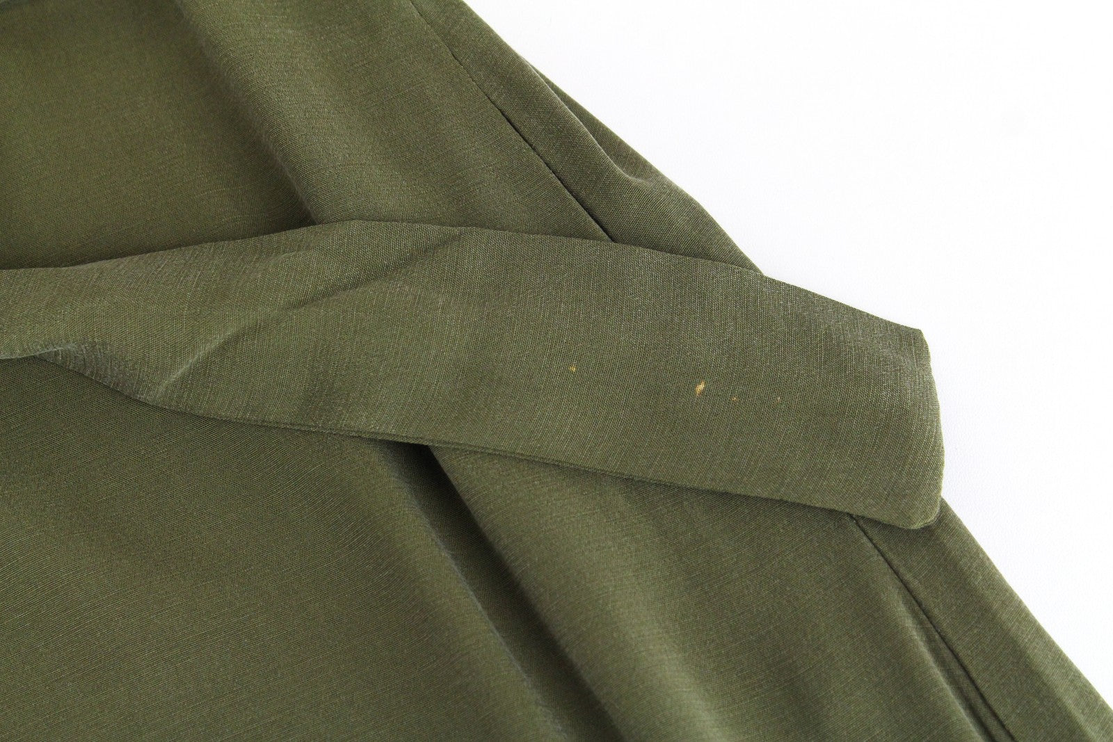 DENHAM Roxanne Women's L Green Belted Long Dress Button-Up Collared Short Sleeve