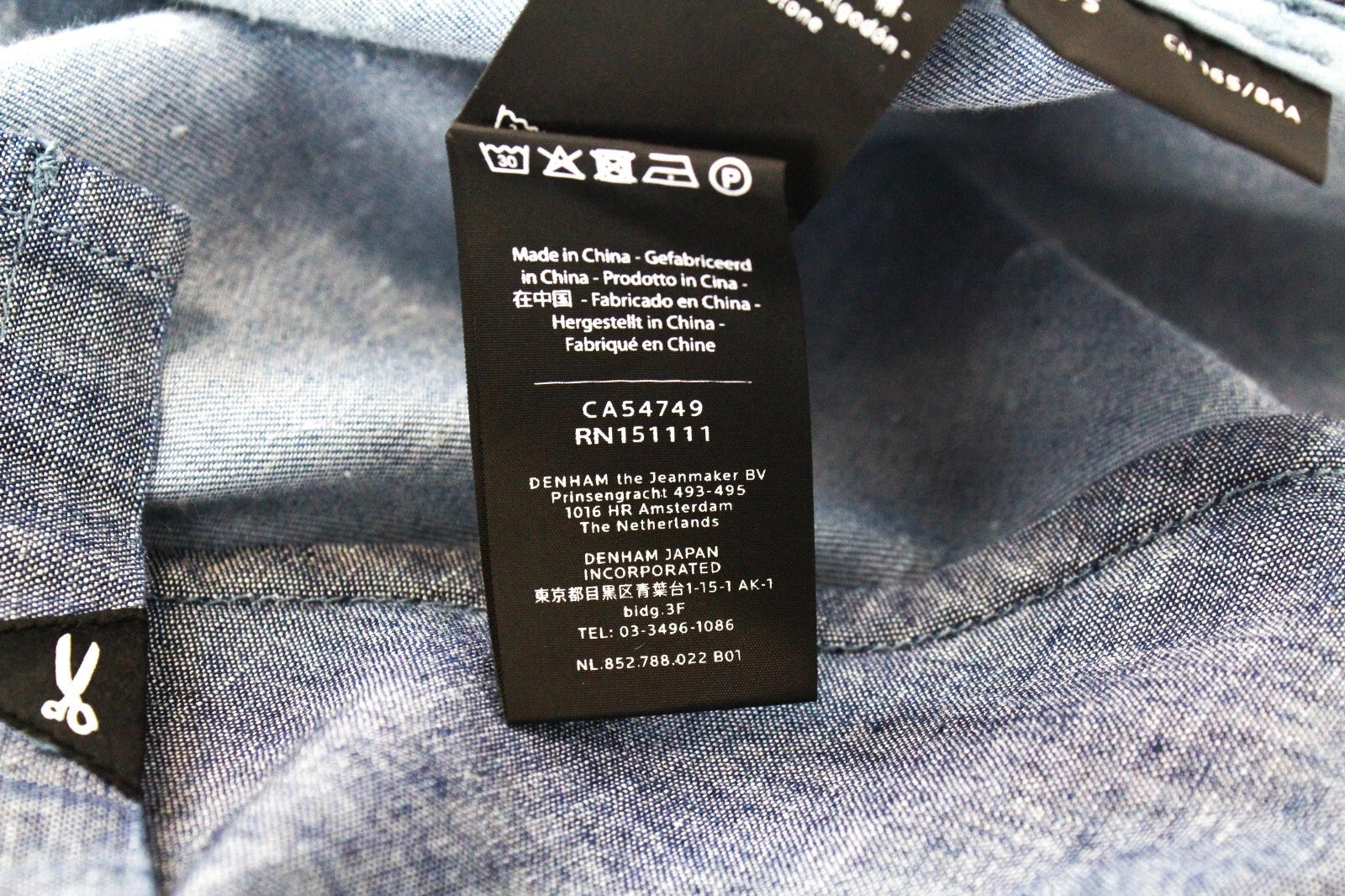 DENHAM Seascape Women's T-Shirt S Blue Patterned Cotton Short Sleeve Denim Look