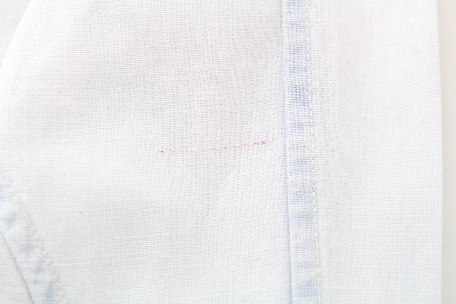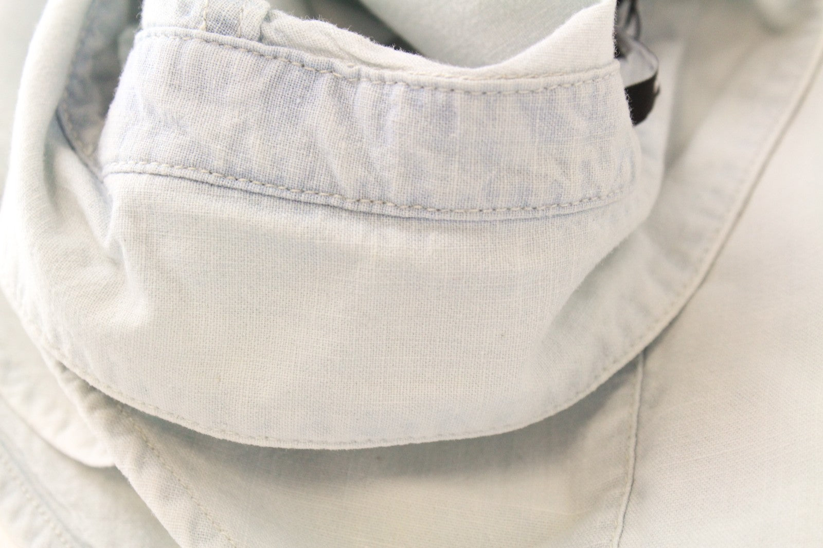 Stains on the collar and right sleeve. Pulled thread on the back. Please see added photos.