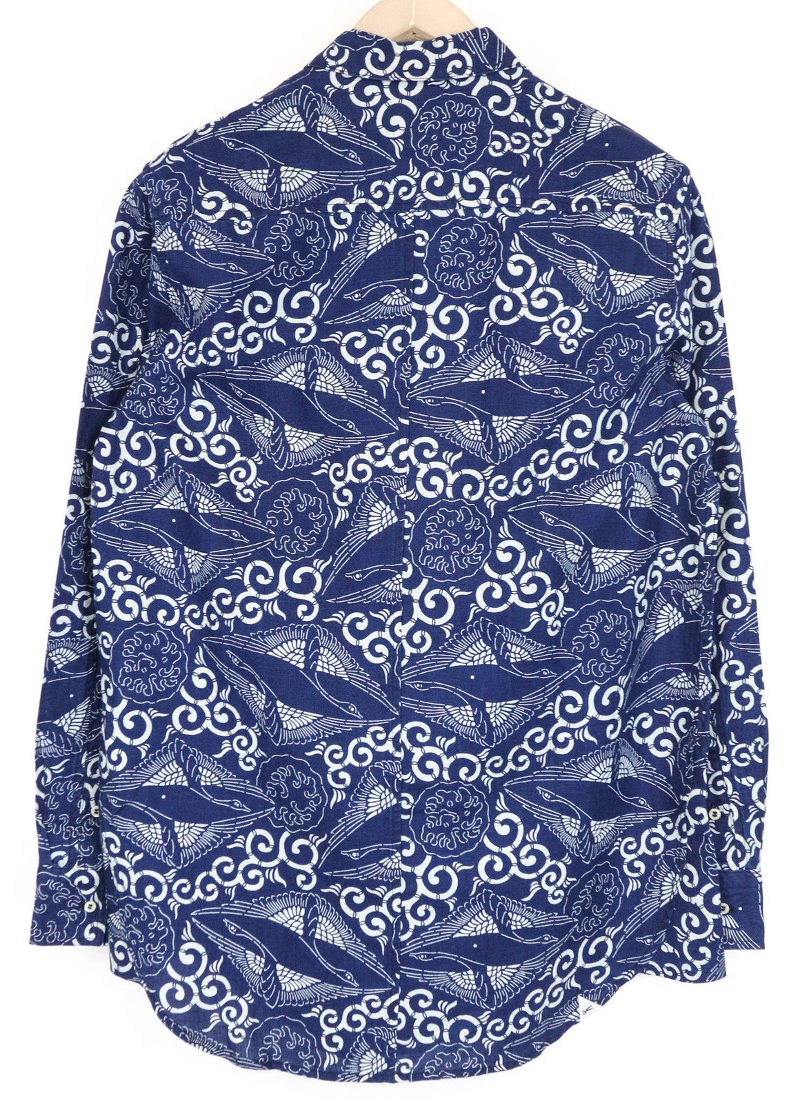 DENHAM Stories Women's Shirt M Blue Oriental Pattern Long Sleeve Buttoned