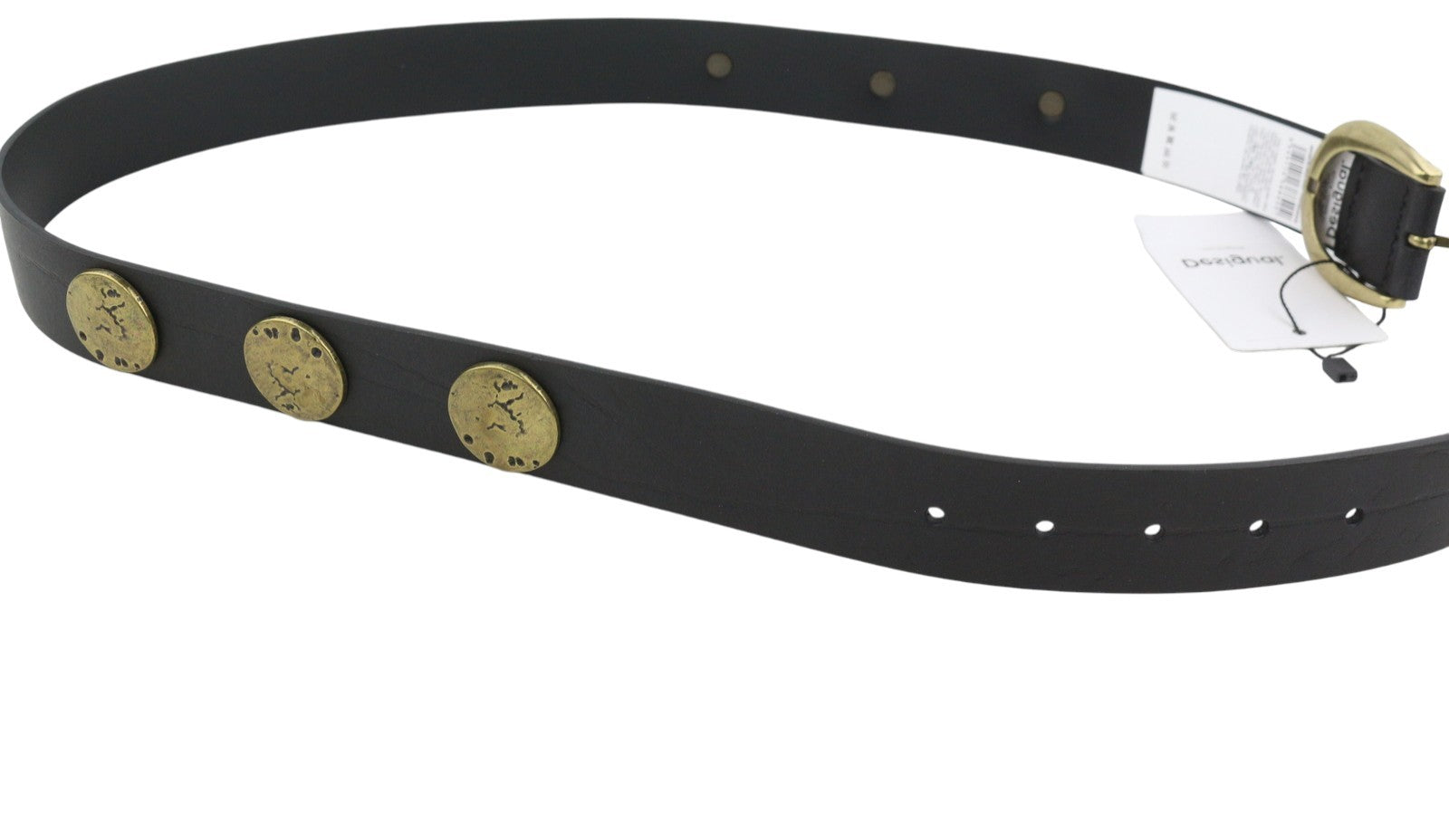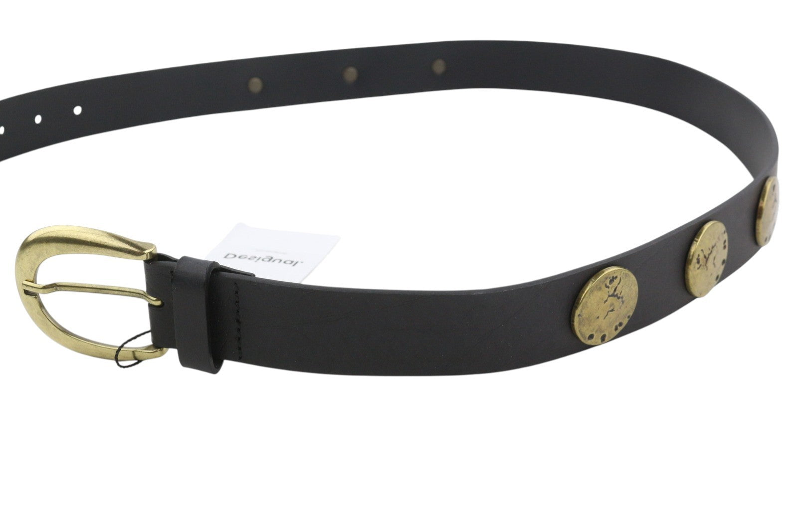 DESIGUAL Big Studs Women Belt 95 CM Black Bonded Leather Gold Tone Buckle