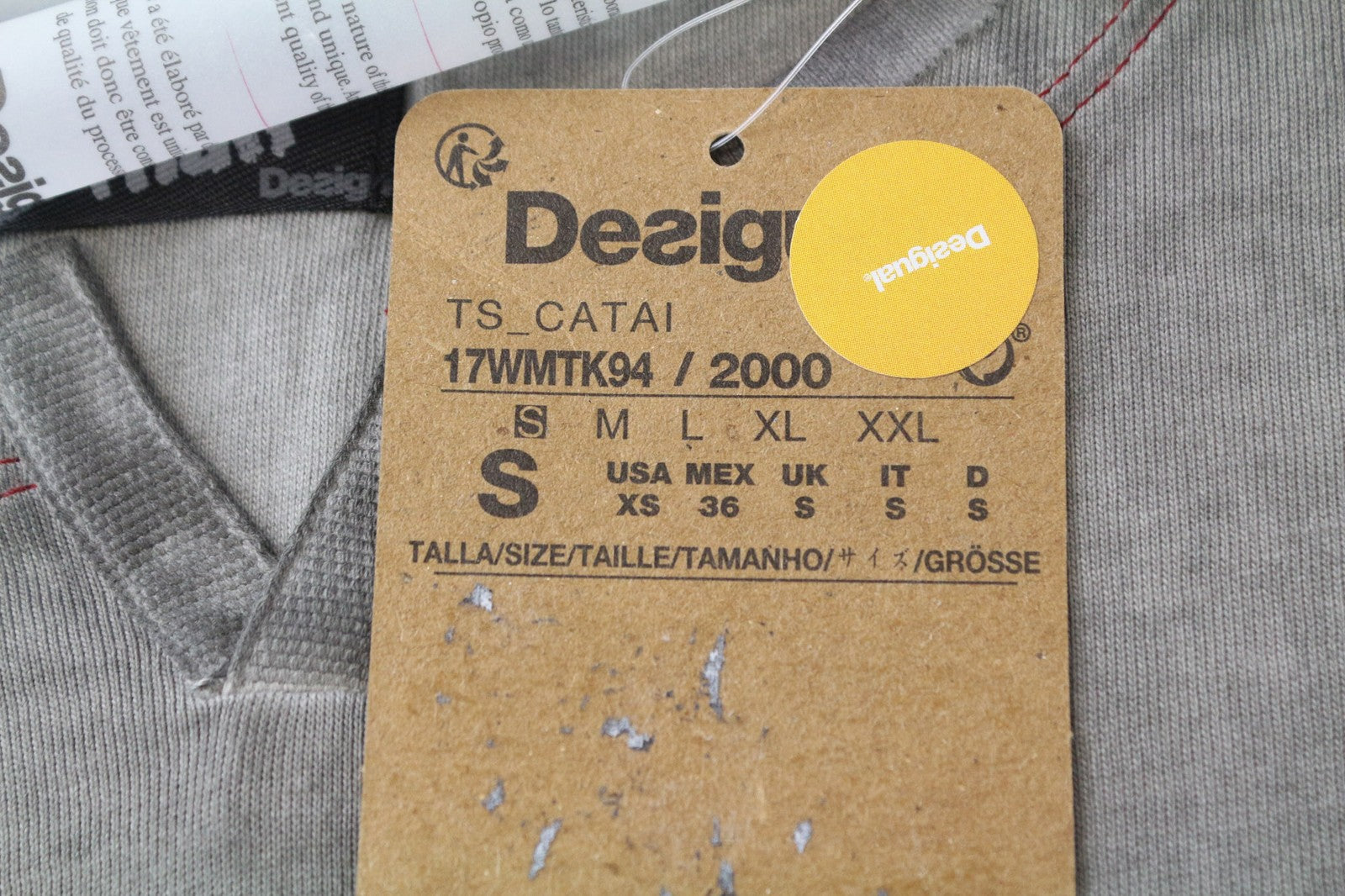 DESIGUAL Catai Men's T-Shirt S Grey Pure Cotton Short Sleeve Patterned Top