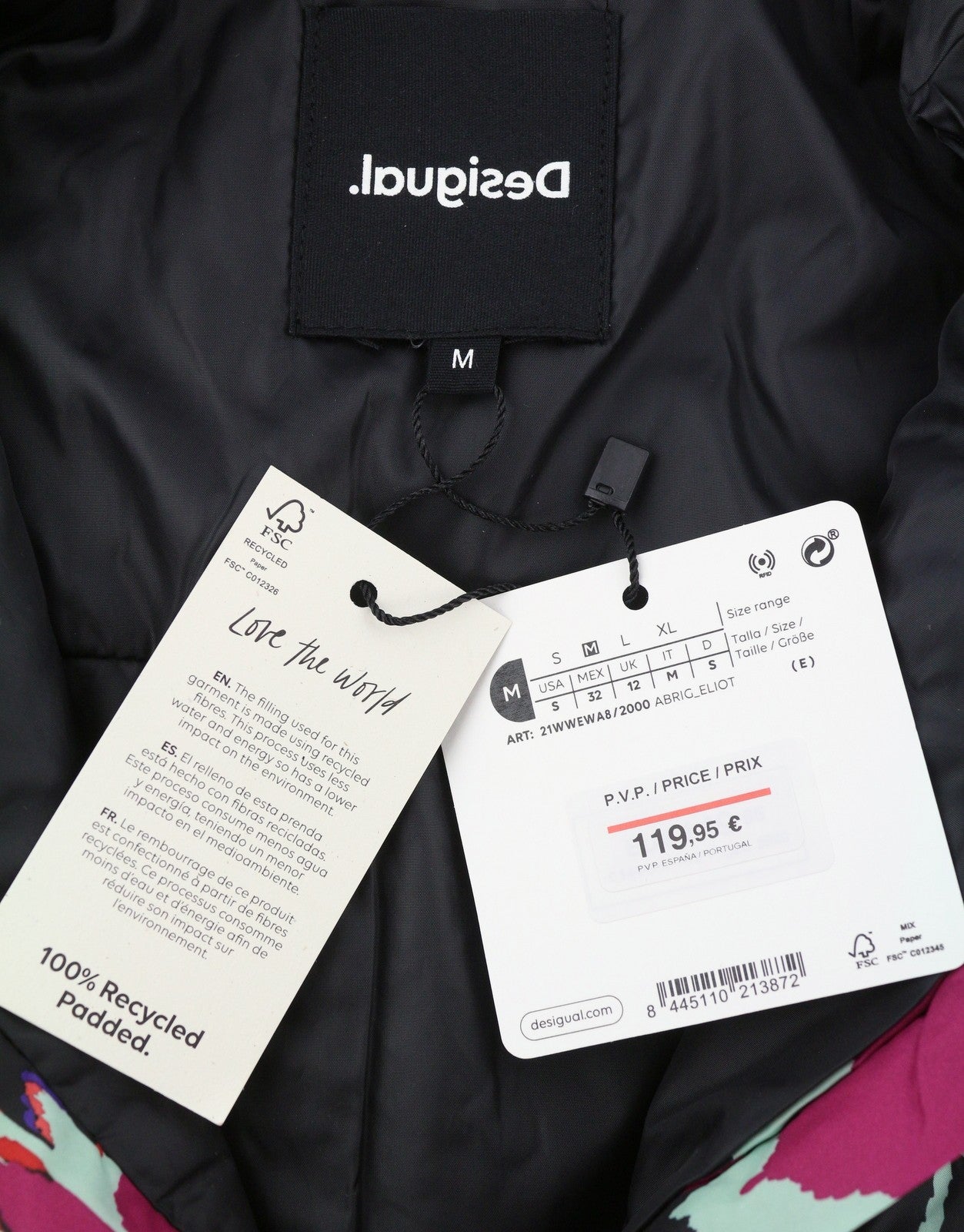 DESIGUAL Eliot Women Jacket M Colourful Abstract Pattern Padded Snap Button