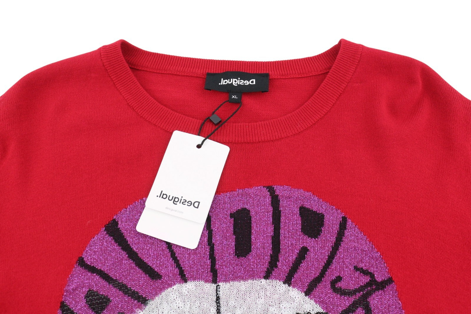 DESIGUAL Esopo Women Jumper XL Red Shiny Lip Print Tight-Knit Pullover