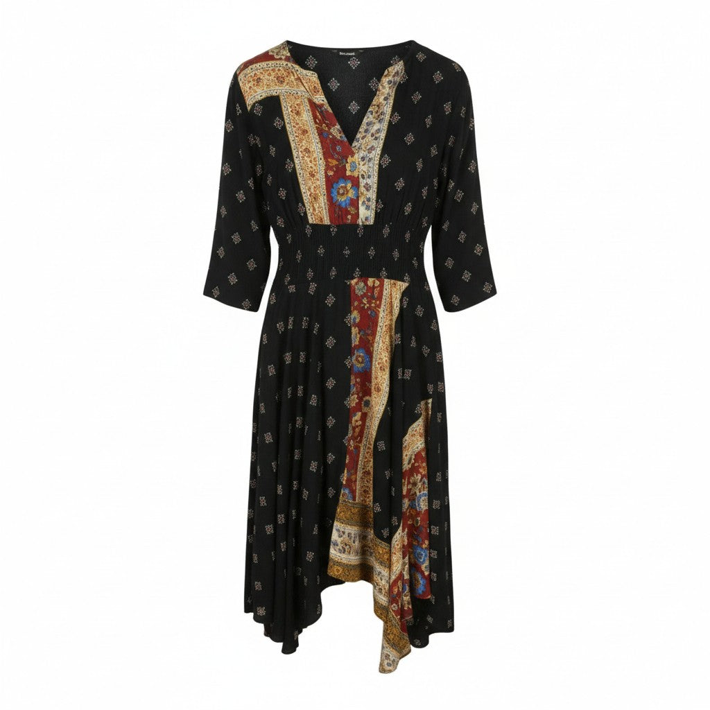 DESIGUAL Gelia Women Dress EU42 3/4 Sleeves Asymmetrical Patterned Midi