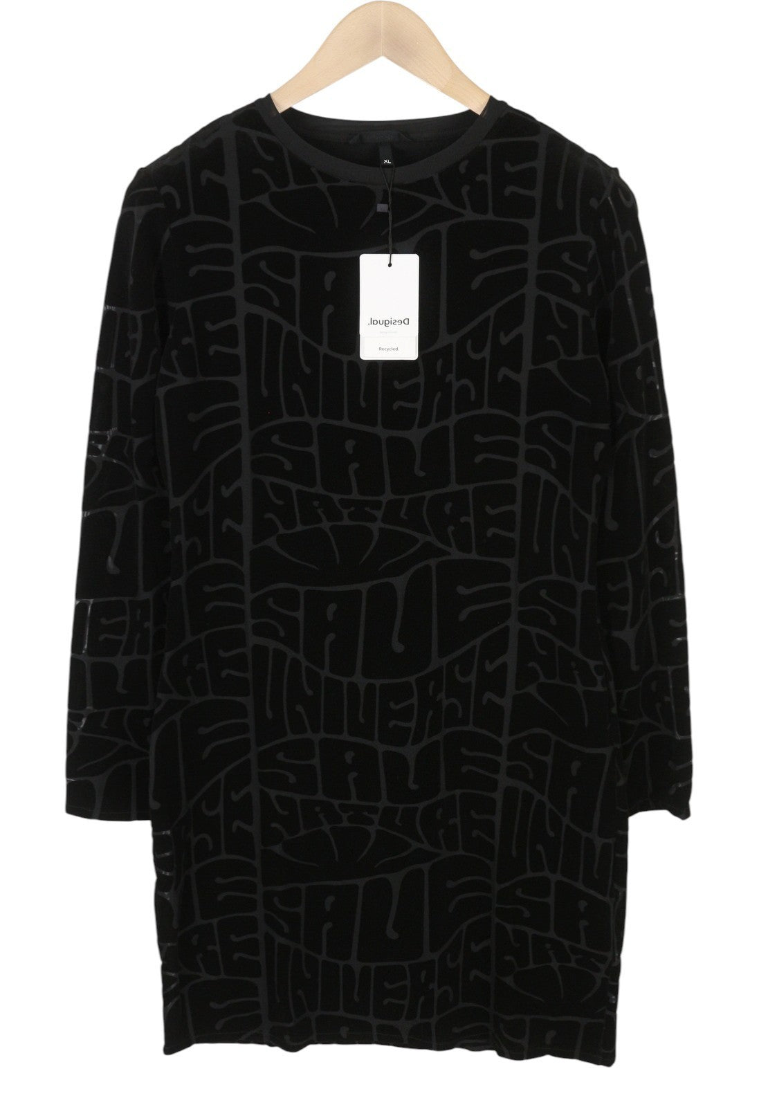DESIGUAL Hellen Women Dress XL Black Textured Crew Neck Long Sleeve Fitted