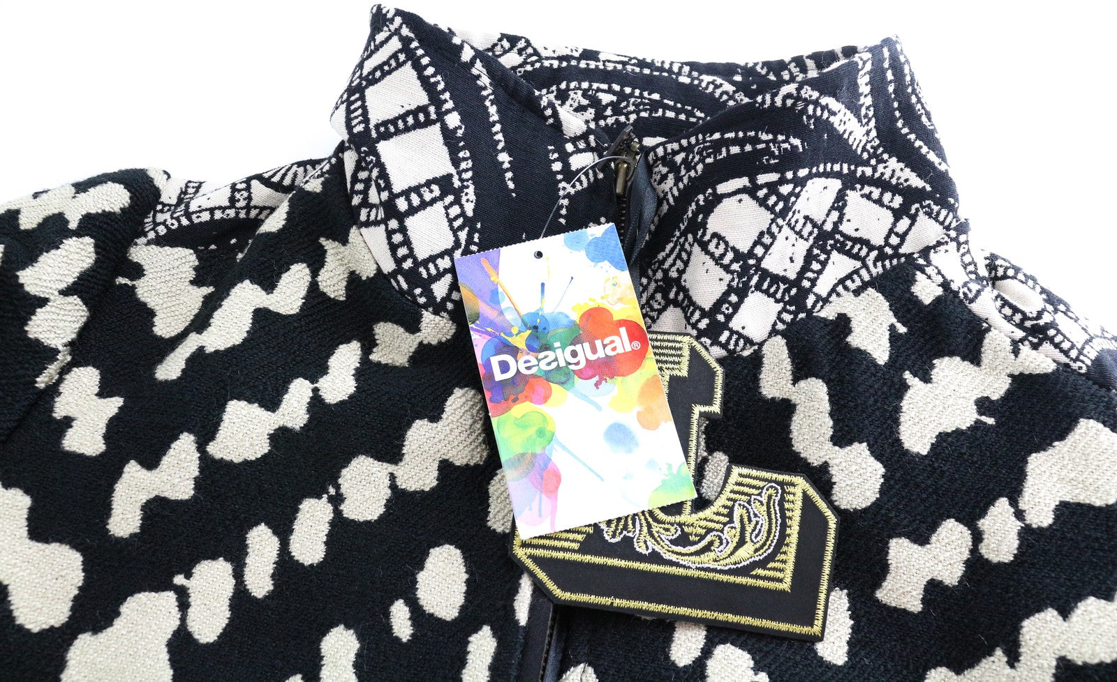 DESIGUAL Kytzia Women's Coat 38 Patterned Wool Blend Grey Single Breasted Lined