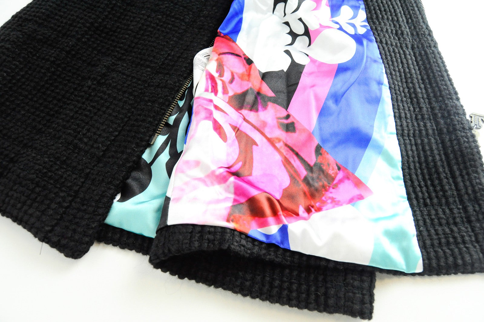DESIGUAL L'Adoration Womens Coat 38 Black Cotton Blend Lined Pattern