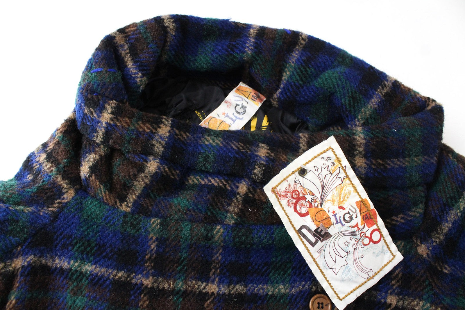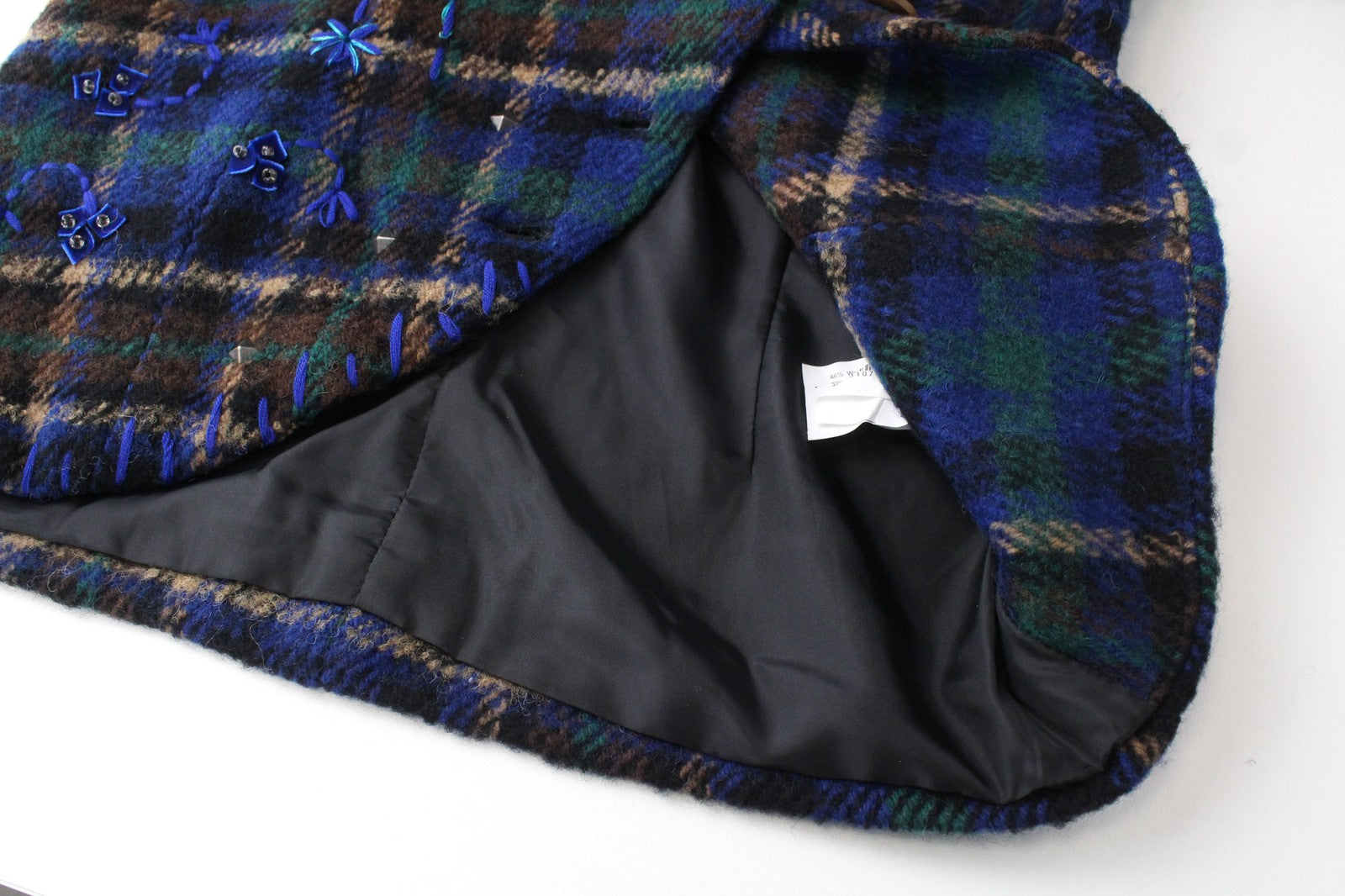 DESIGUAL Mula Women's Coat EU 38 Blue Check Wool Blend Logo Detail Embroidered
