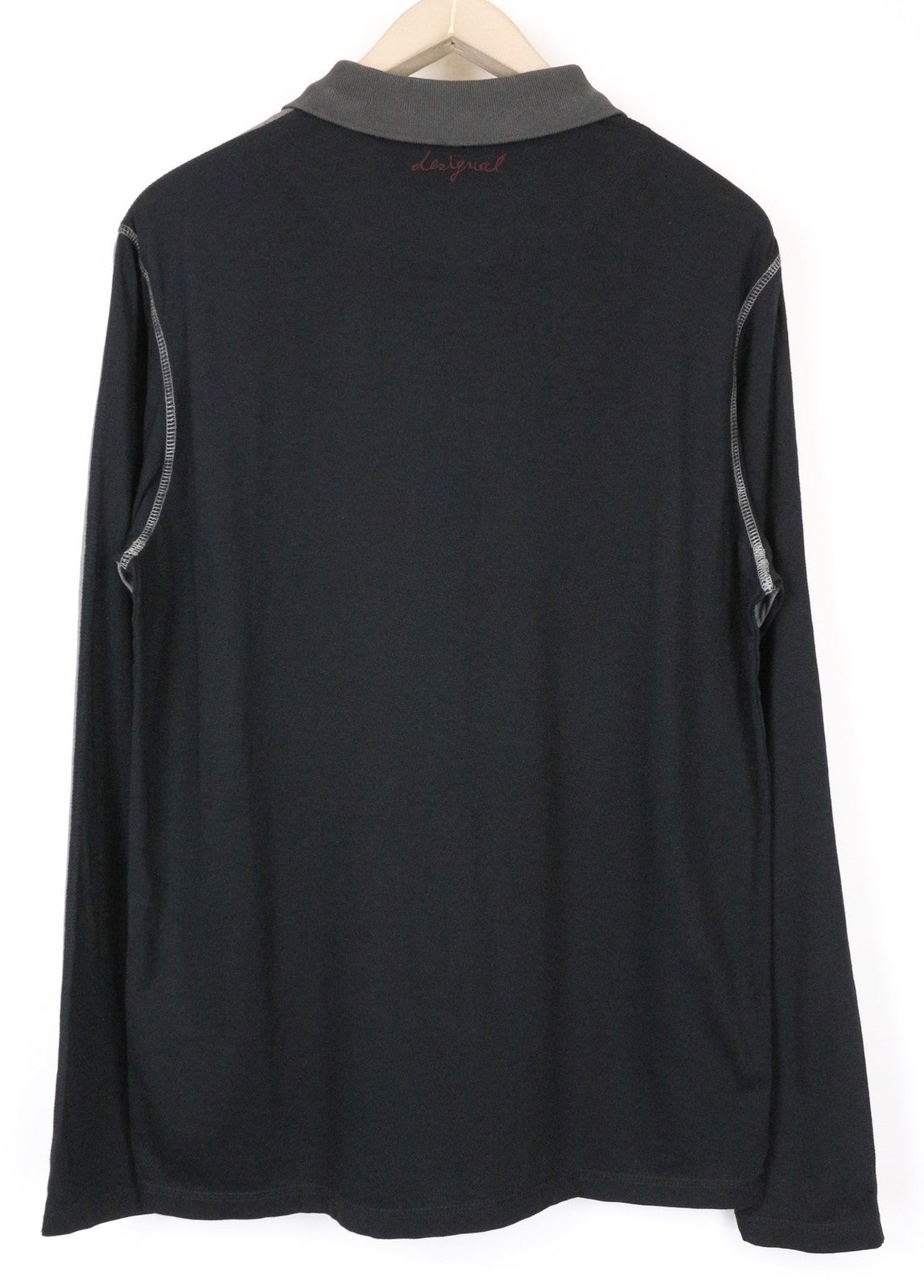 DESIGUAL Samue Men's Polo T-Shirt L Grey Cotton Washed Look Long Sleeve
