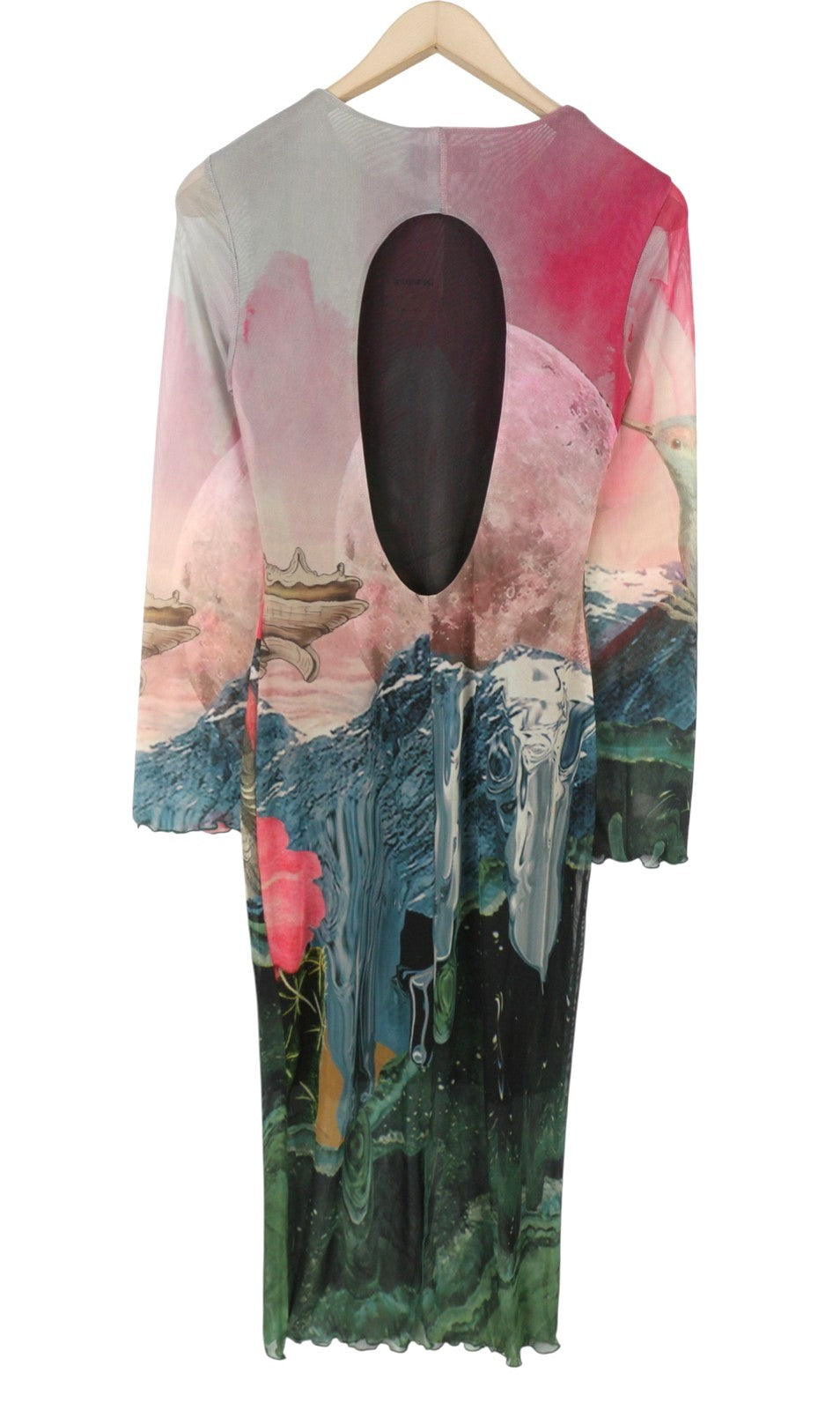 DESIGUAL Skyline Women Dress XL Colourful Wide Cut-Out Back Tulle Midi