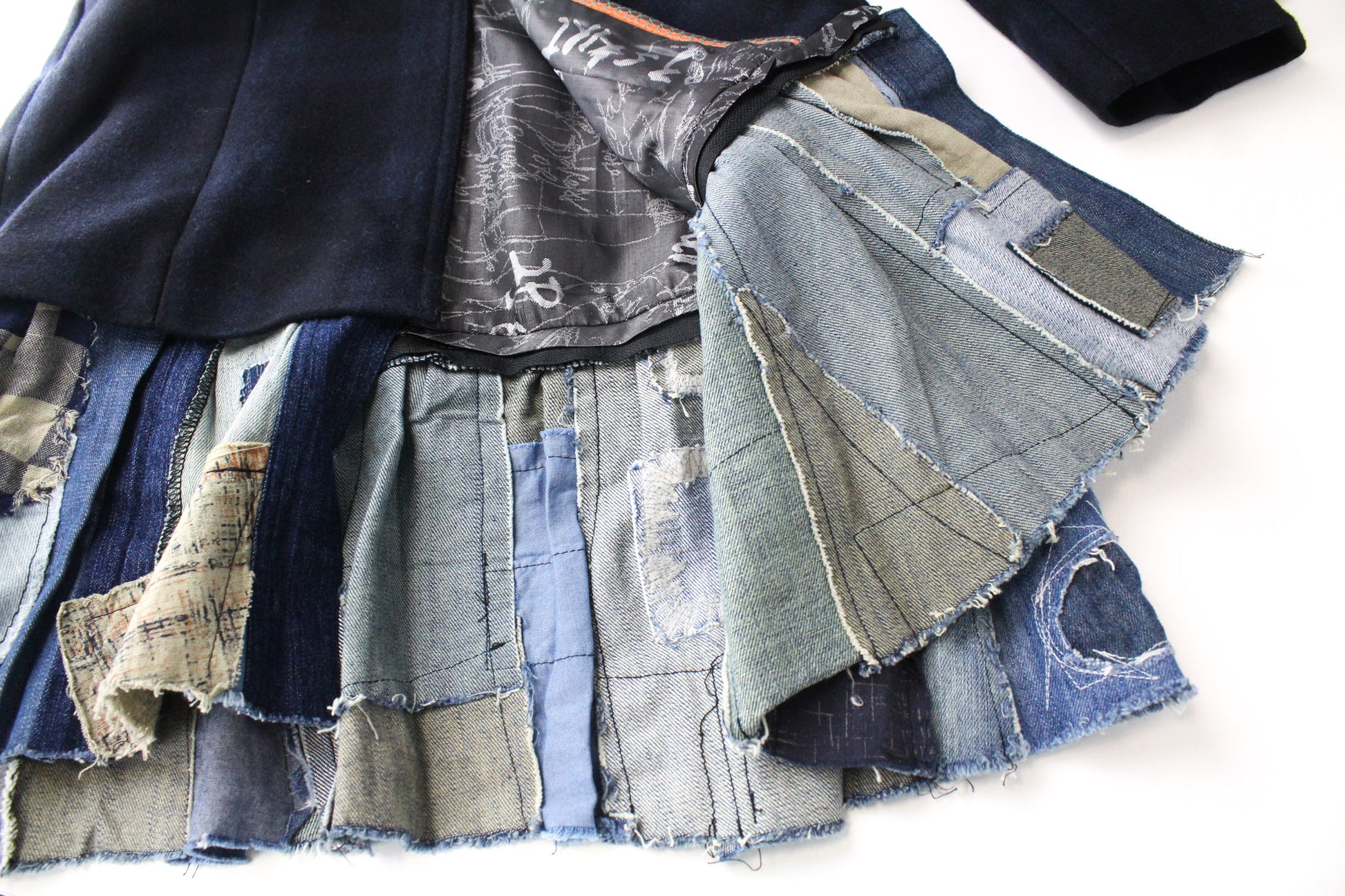 DESIGUAL Snow Robot EU36 Navy Wool Coat Checked Designer Mid-Length Look