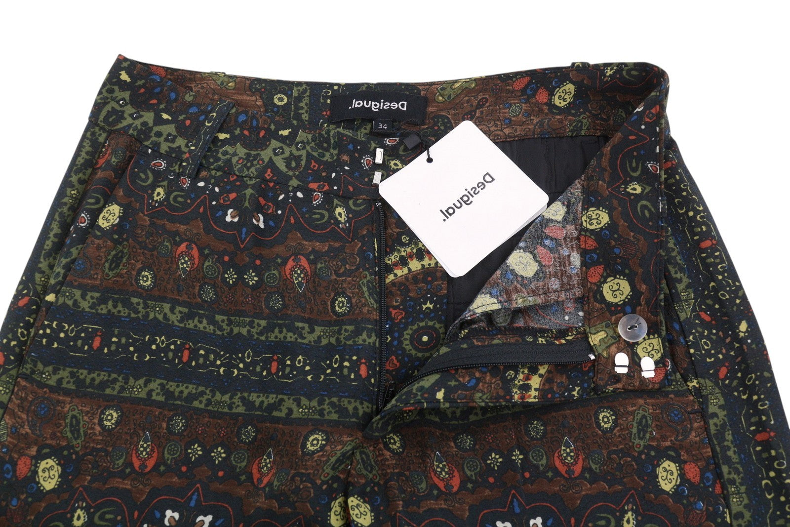 DESIGUAL Tomoe Women Trousers W24 Patterned Wide Leg High Waist Viscose