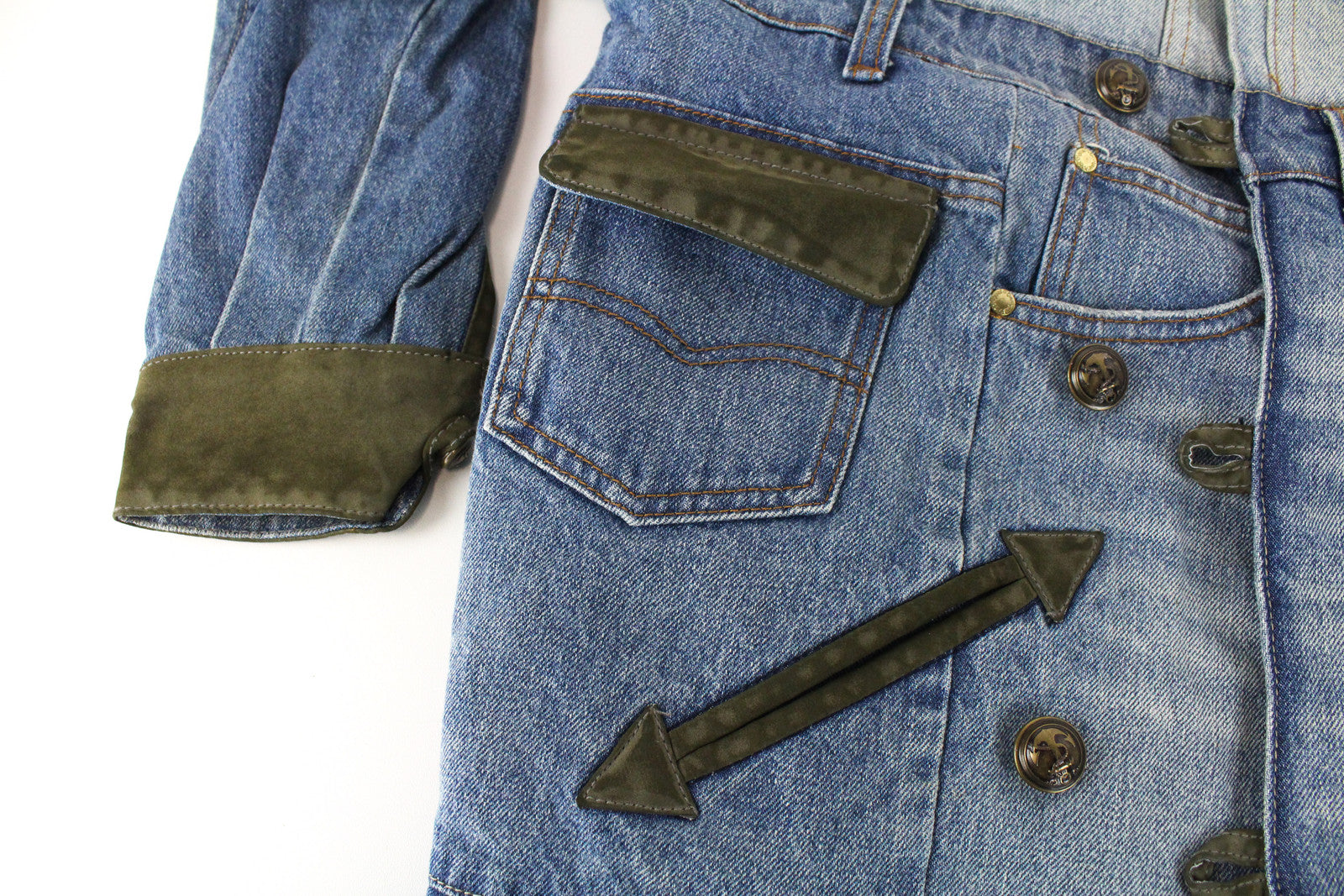 DESIGUAL Women's Blue Denim Jacket 40 Cotton Long Sleeve Geisha Sequin Logo