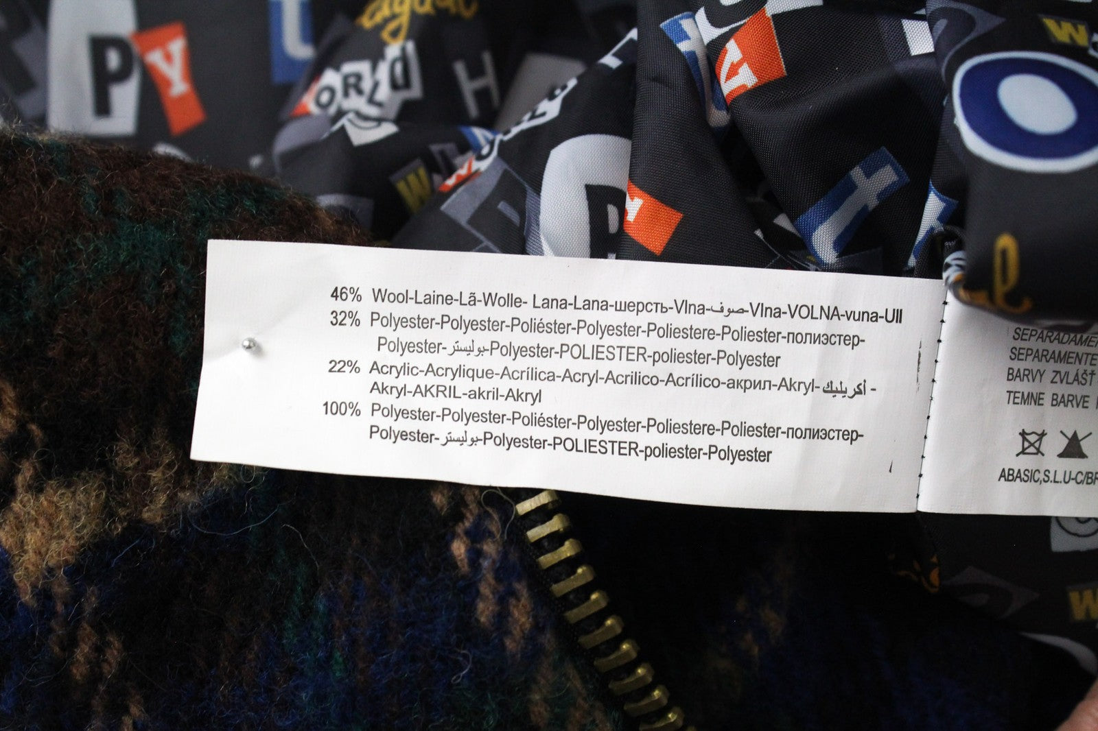 DESIGUAL Women's Jacket 36 Blue Checked Wool Blend Lined Zip Short Sleeve Coat