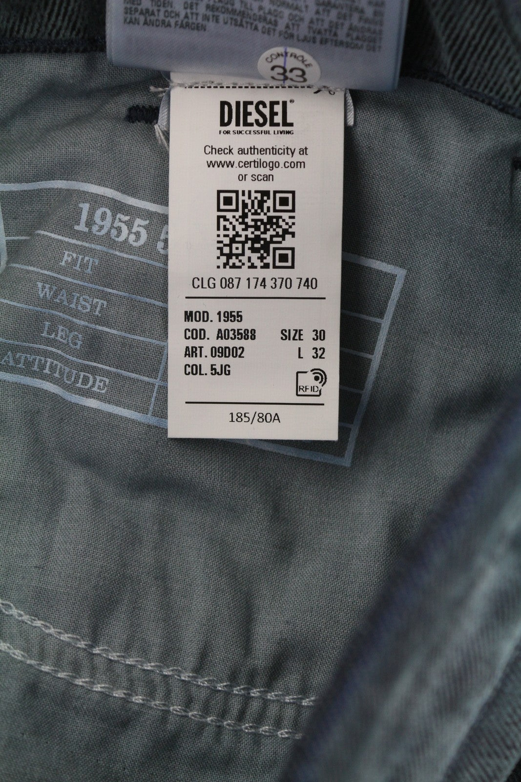 DIESEL 1955 09D02 Men Jeans W30/L32 Regular Fit Straight Leg High Waist RRP€250