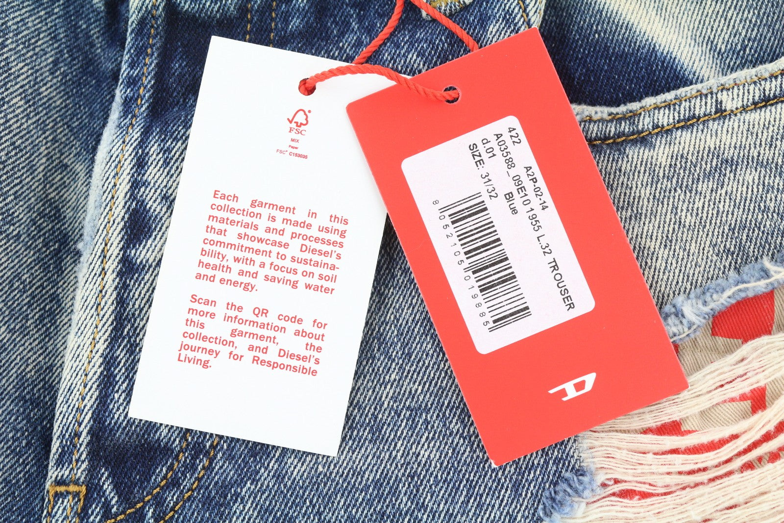 DIESEL 1955 09E10 Men Jeans W31/L32 Blue Straight Leg Distressed RRP375