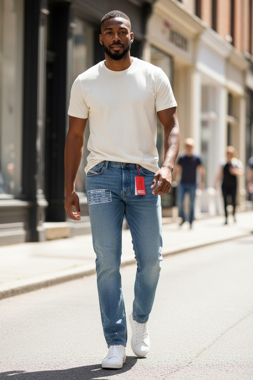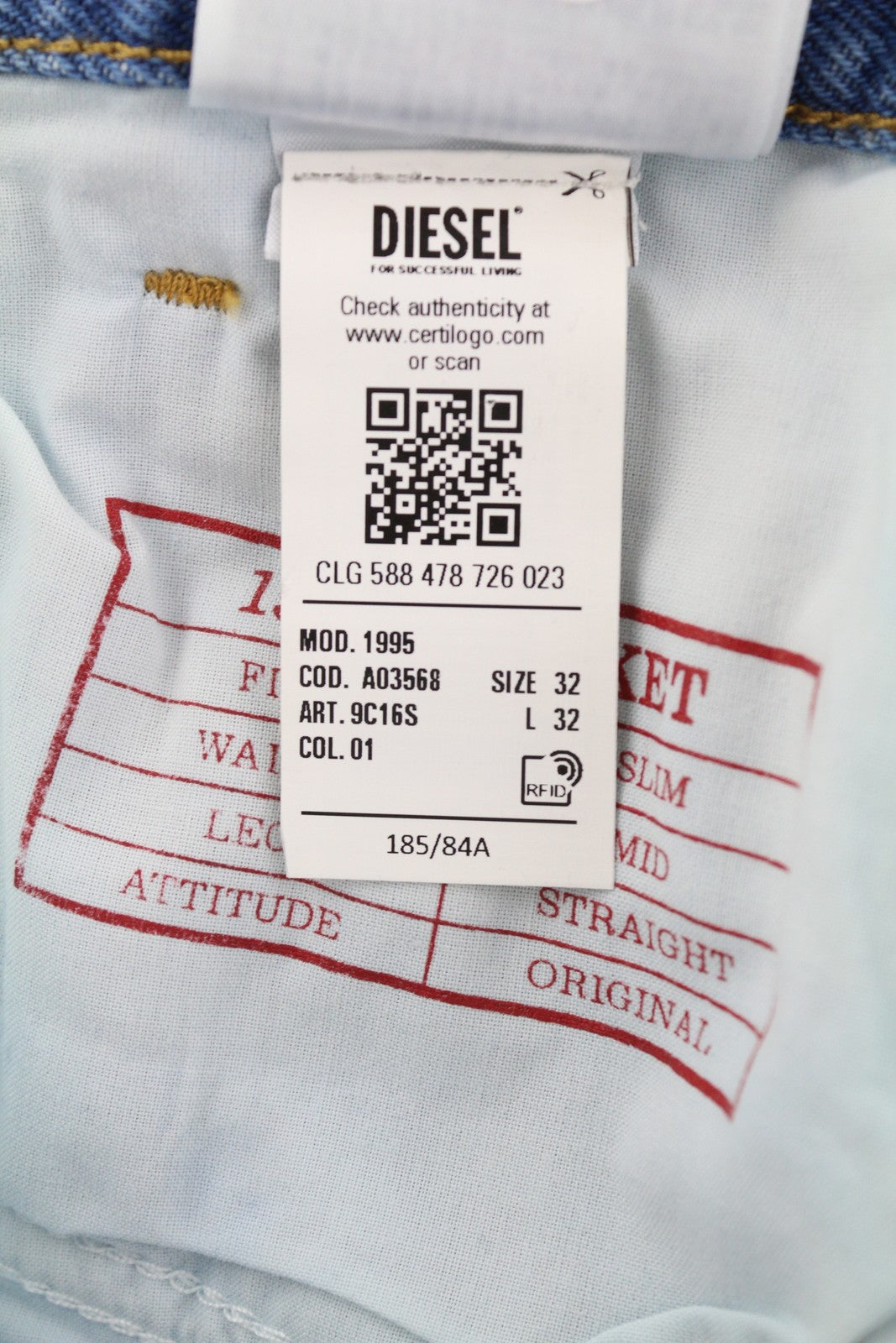 DIESEL 1995 9C16S Men Jeans W32/L32 Slim Straight Leg Mid Waist Washed Blue