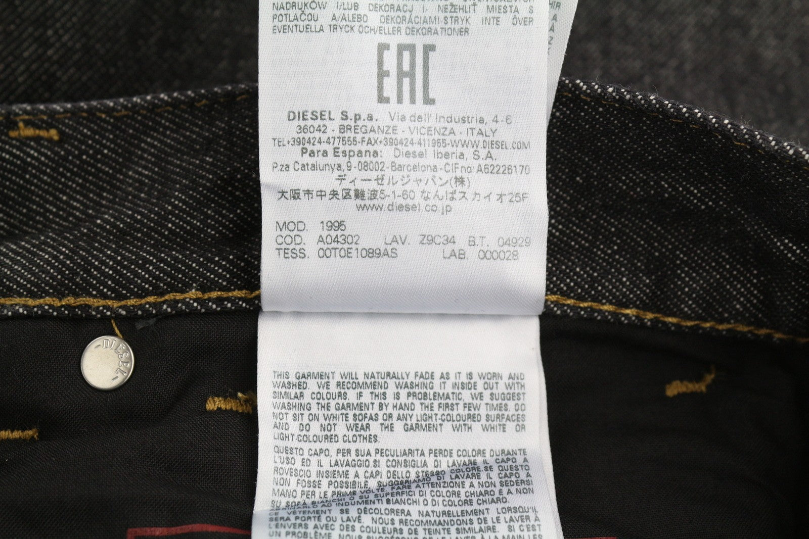 DIESEL 1995 Z9C34 Men Jeans W34/L30 Slim Straight Leg Button Dark RRP€185