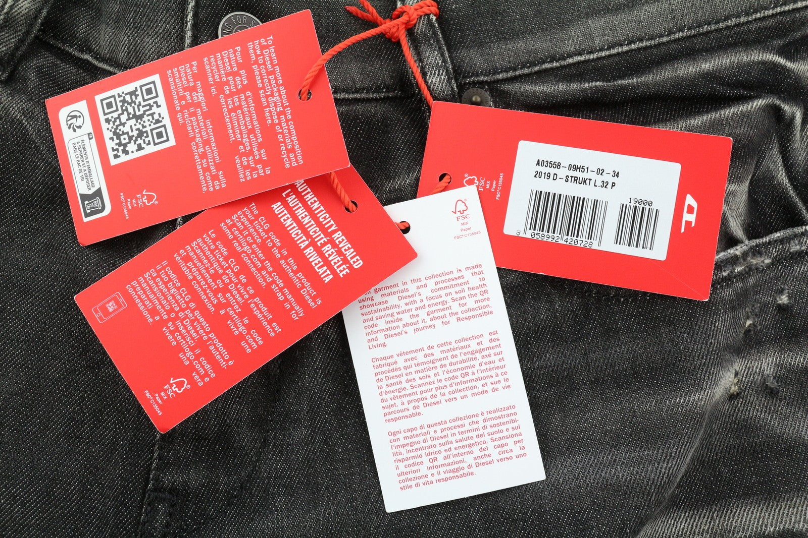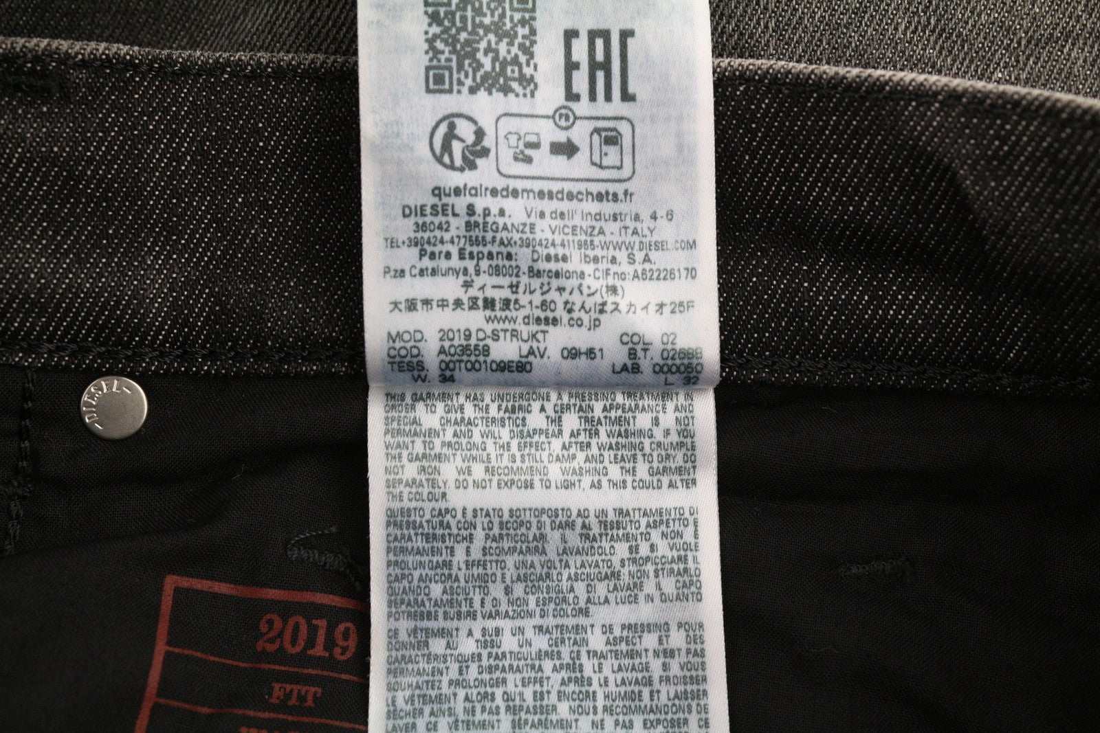 DIESEL 2019 D-Strukt 09H51 Men Jeans W34/L32 Slim Distress RRP€250 Black