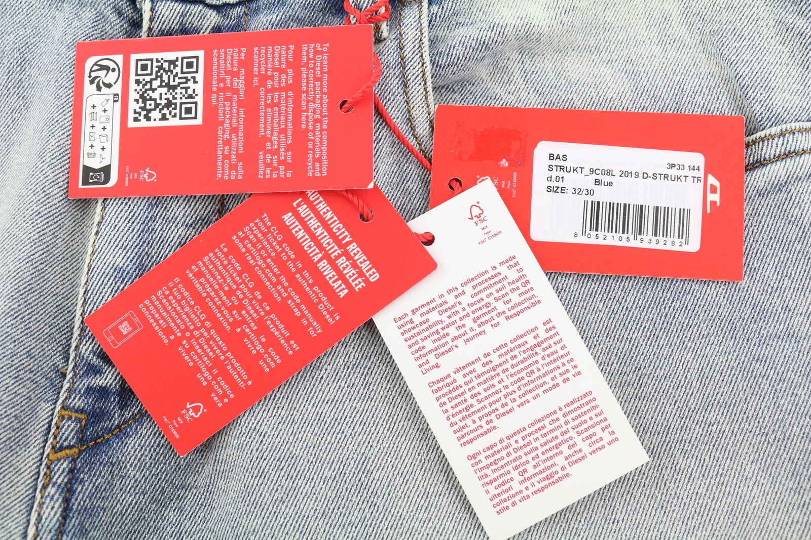 DIESEL 2019 D-Strukt 9C08L Men Jeans W32/L30 Blue Faded Slim Fit RRP350