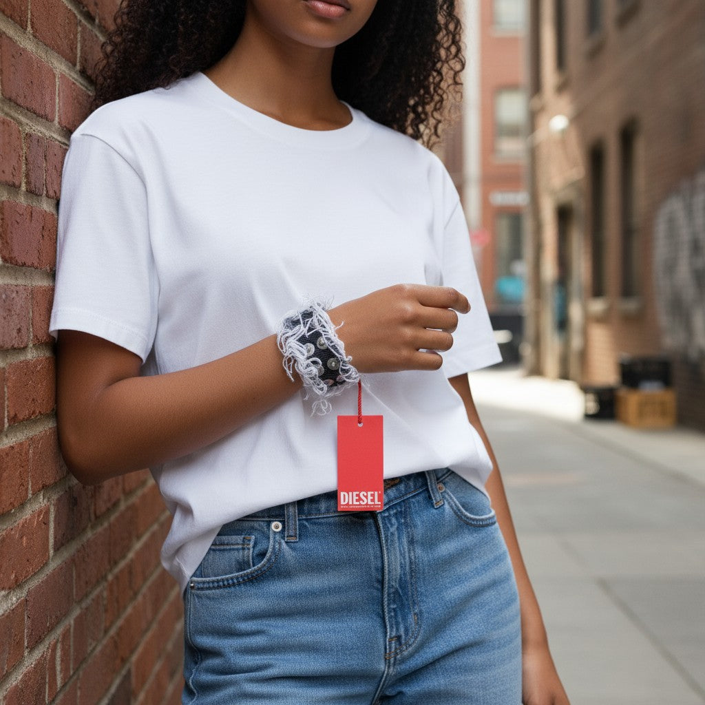 DIESEL A-Vets C Women Bracelet OS Black Denim Threads Details Silver Tone