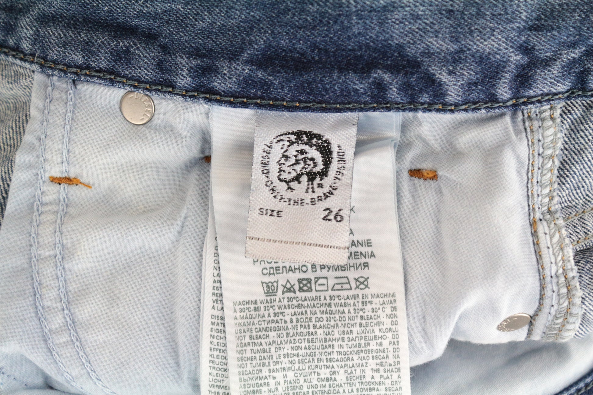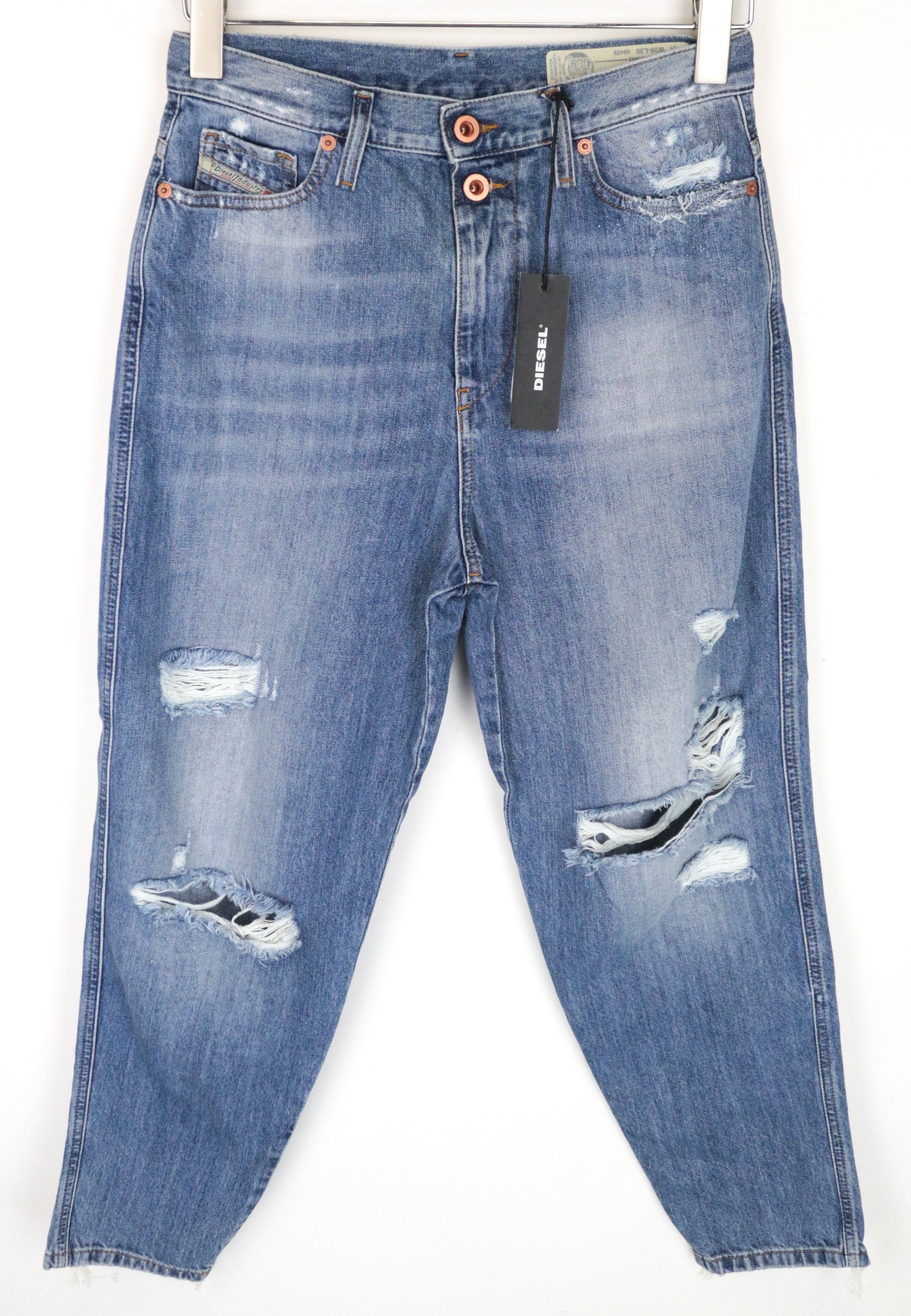 DIESEL Alys 084ZE Women's W26 L30 Jeans Straight Fit Ripped Cotton Blue Wash