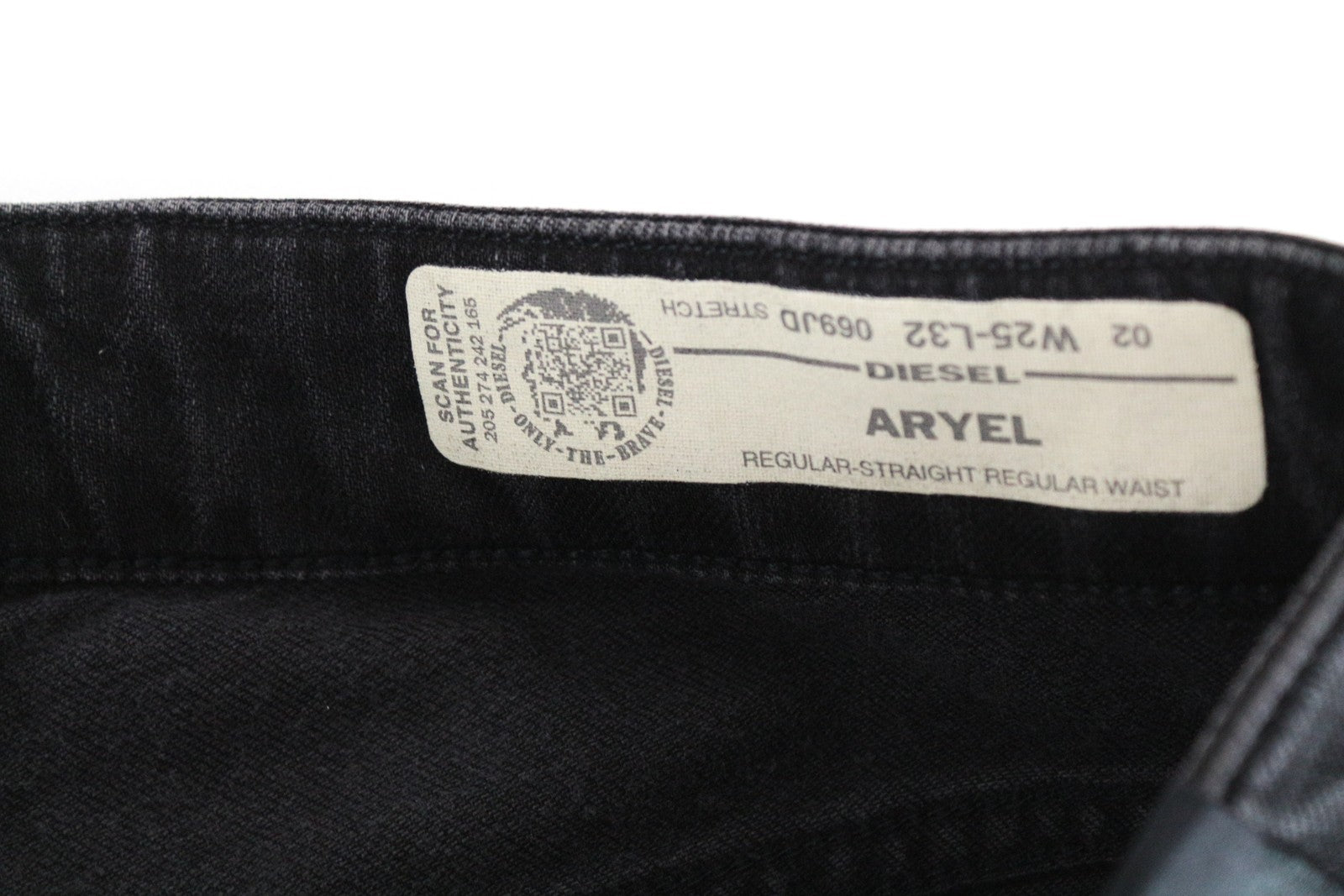 DIESEL Aryel 069JD Women Jeans W25/L32 Regular Straight Coated Black Stretch