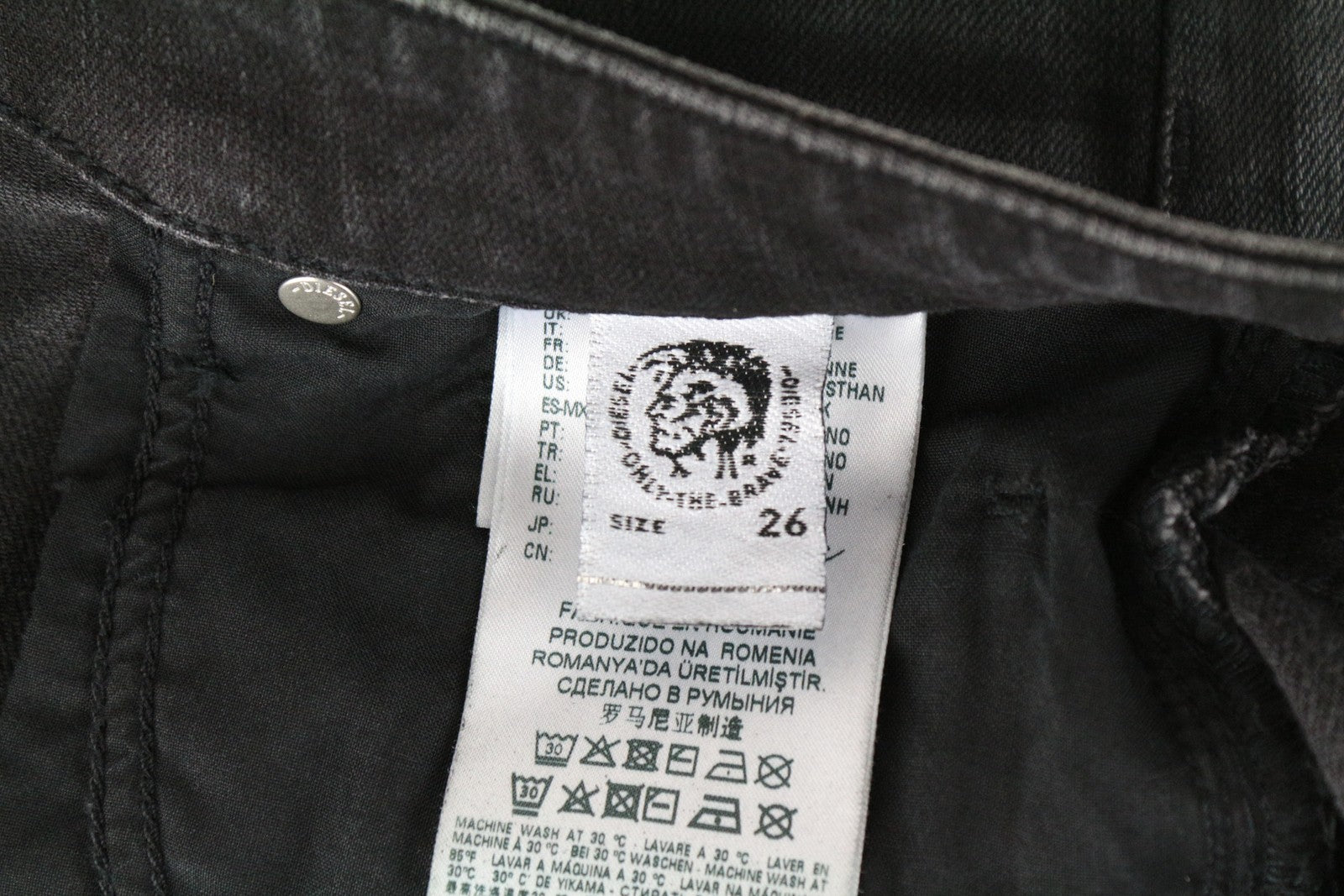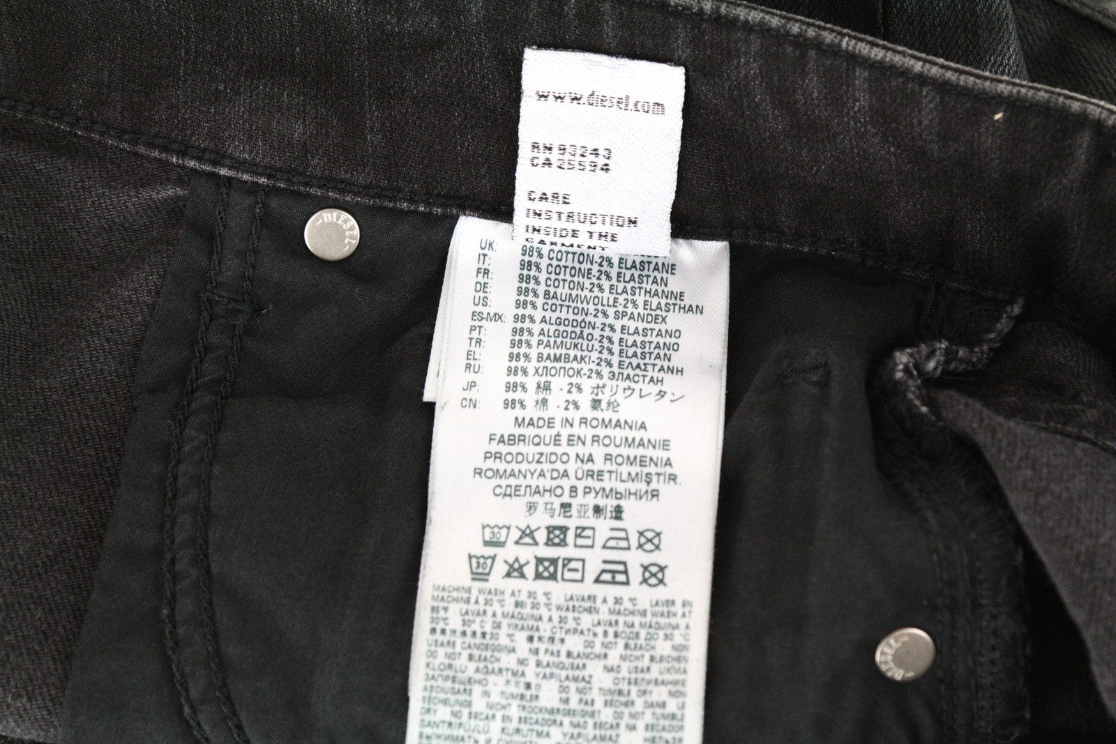 DIESEL Aryel 069JD Women Jeans W26/L32 Coated Stretch Straight Distress Black