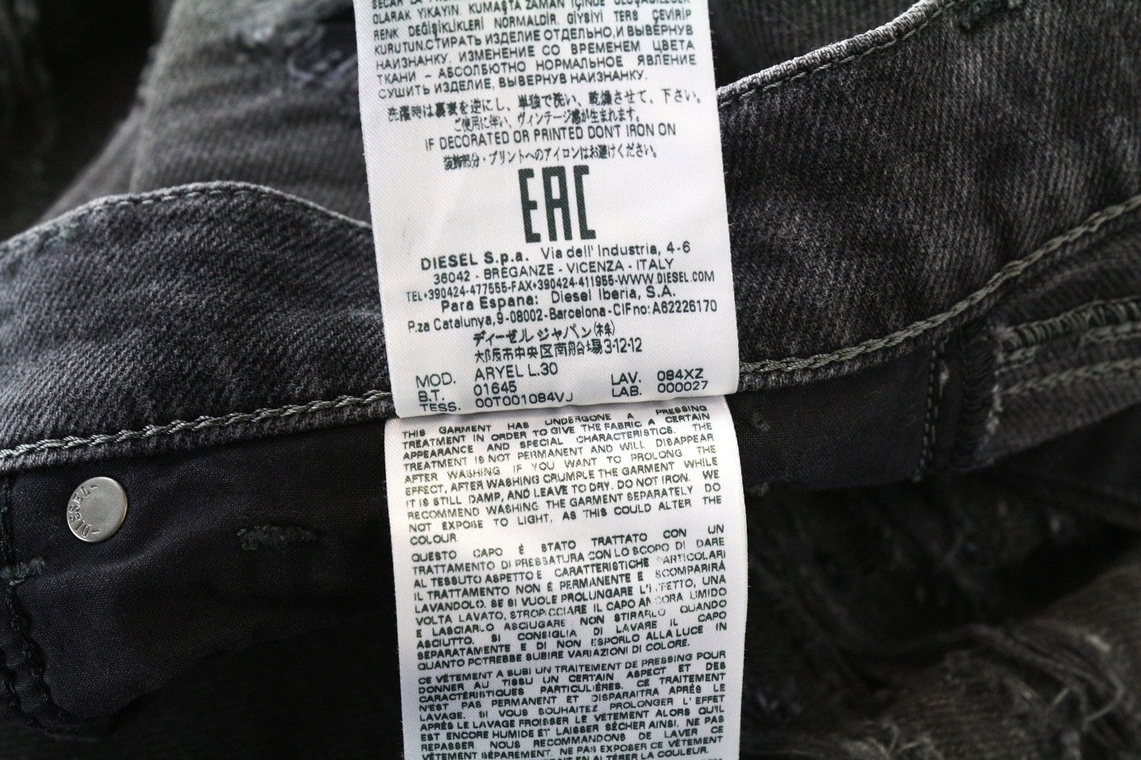 CONDITION: Pulled thread on the right leg. THIS IS A RARE SALES SAMPLE. Inside labels may differ. Some Diesel sizes can differ. Please, carefully check the given measurements, especially the waist. Please see added photos.