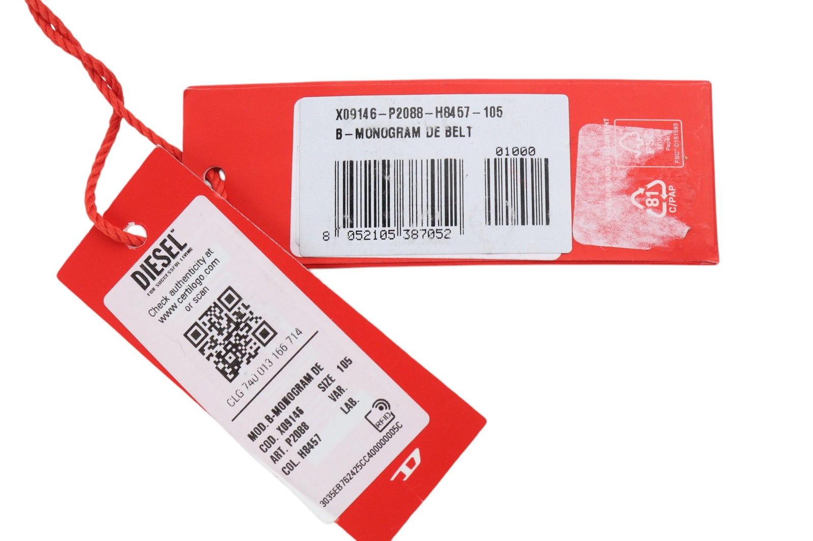 DIESEL B-Monogram Men Belt 105 cm Blue Red Leather Denim Patterned RRP€150
