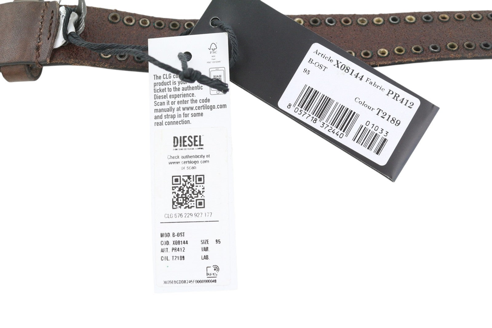 DIESEL B-Ost Men Belt 95 CM Dark Brown Silver Tone Details Buckle RRP€200