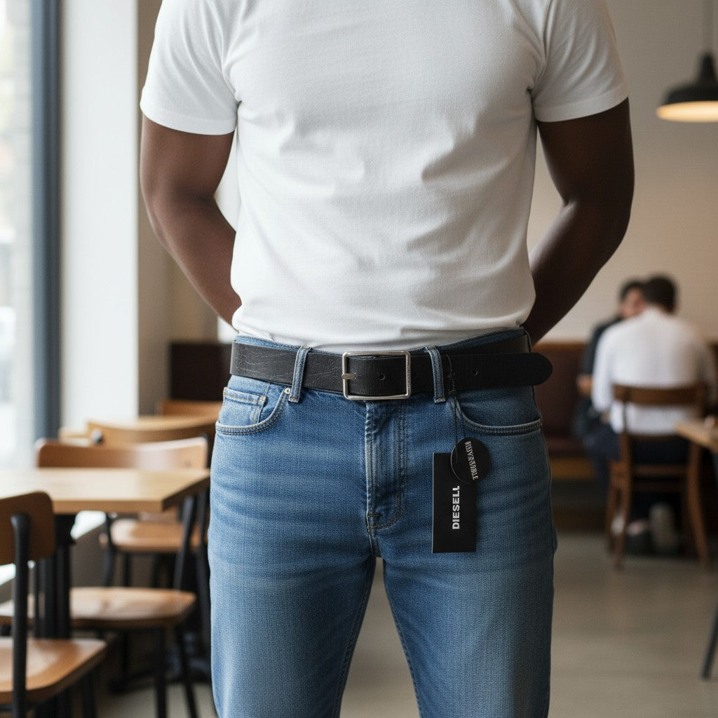 DIESEL B-Photo Men's Belt 95 CM Black Leather Silver Tone Buckle Reversible Dark