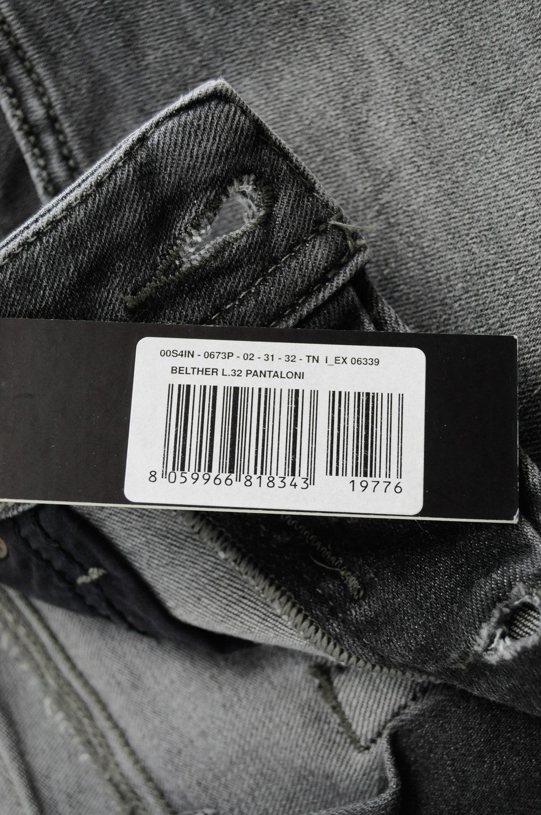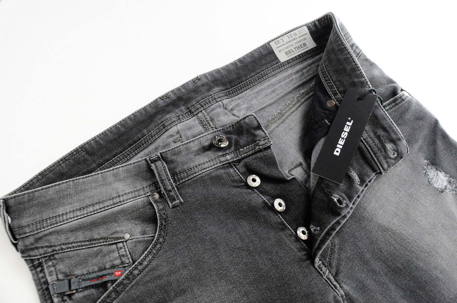 DIESEL Belther 0673P Men's Grey Ripped Tapered Jeans W31/L32 Cotton Stretch
