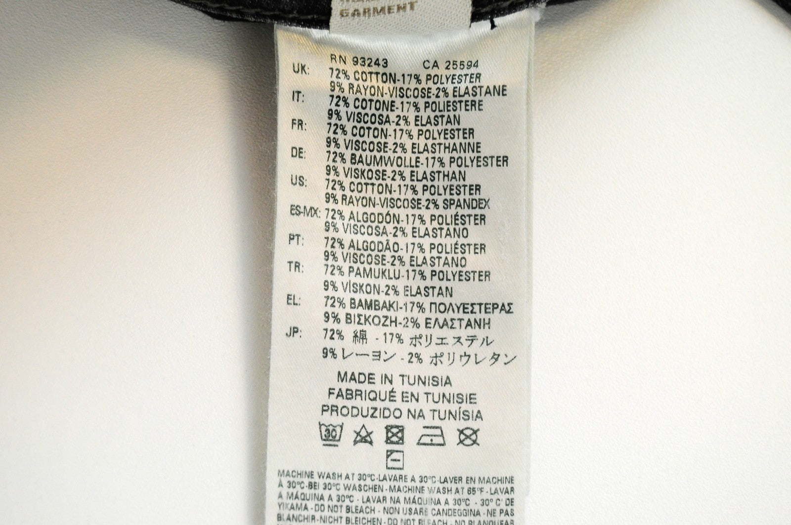 Material : 72%Cotton,17%Polyester,9%Viscose,2%Elastane