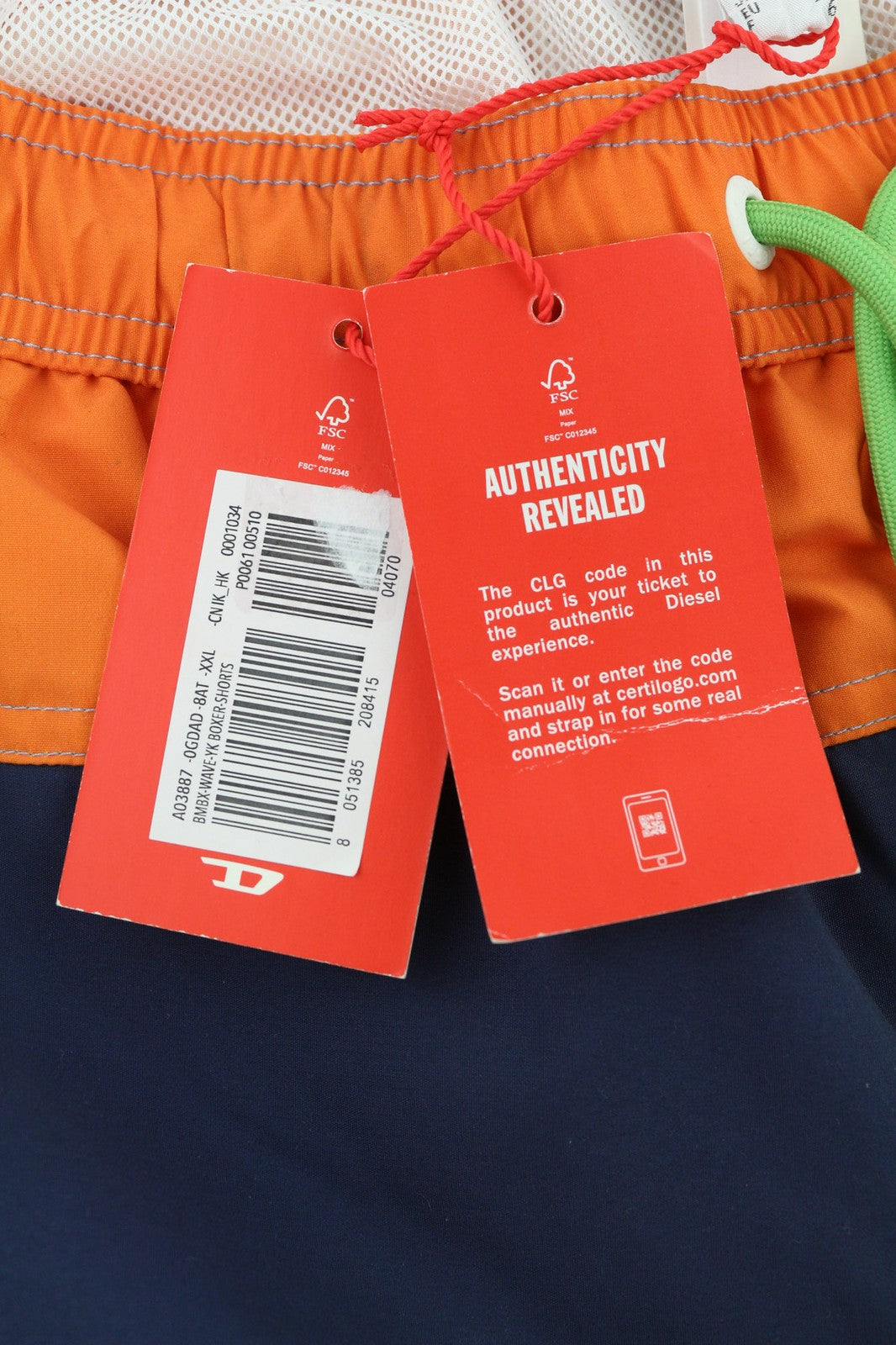 DIESEL BMBX-Wave-YK Men's Swimwear 2XL Beach Boxer Elastic Waist Mesh Lining