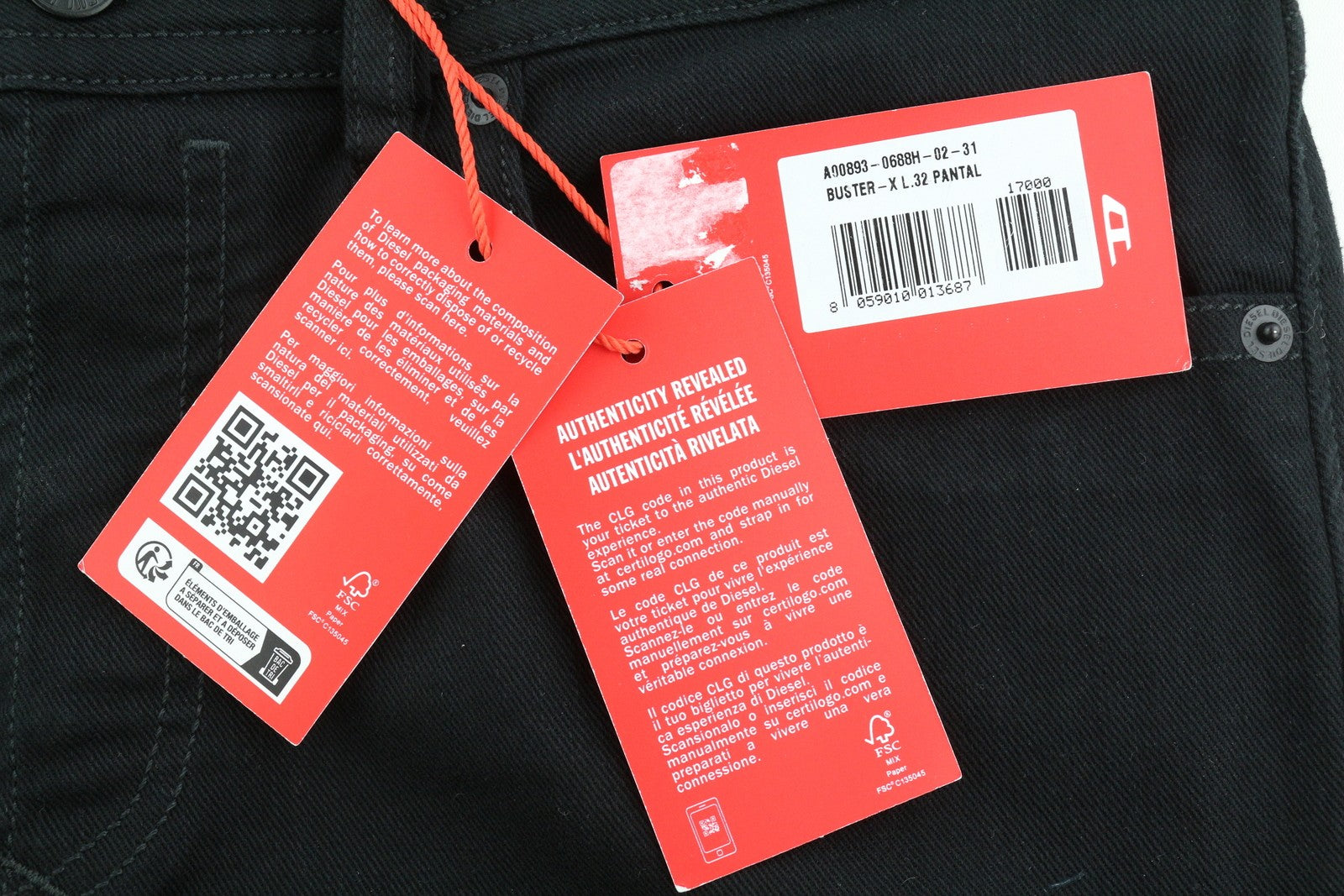 DIESEL Buster 0688H Men Jeans W31/L32 Tapered Fit Buttoned Pockets Denim Black